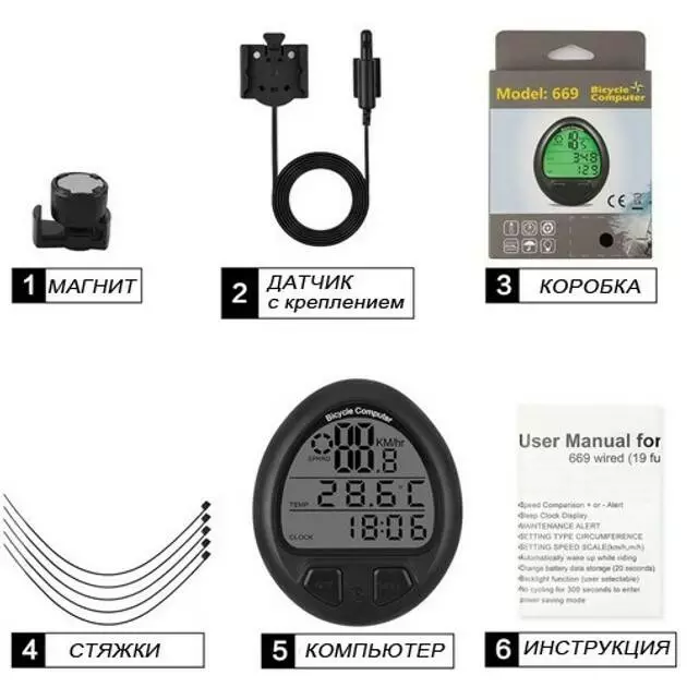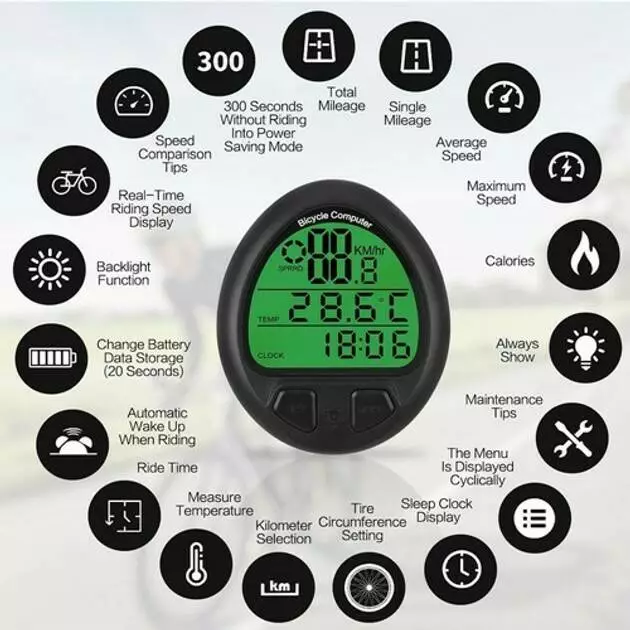 Велокомп'ютер з підсвічуванням дисплея 669/999 (26 функцій) - це багатофункціональний та зручний у користуванні пристрій, який стане надійним помічником у кожній велоподорожі. Завдяки наявності 26 функцій, ви зможете відстежувати всі основні параметри поїздки: поточну, середню та максимальну швидкість, пройдений шлях, час у русі, температуру, час доби, частоту обертання педалей (каденс) та багато іншого. Підсвічування дисплея забезпечує комфортне зчитування даних навіть у темний час доби. Велокомп'ютер легко монтується на кермо та підходить для будь-якого типу велосипеда.
