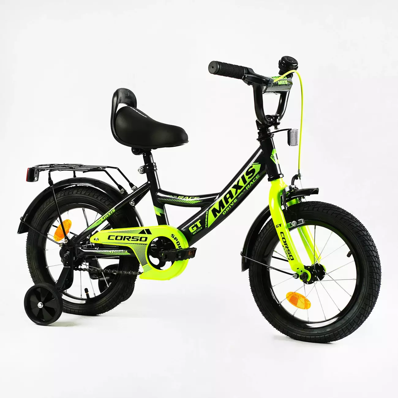 Велосипед 14" дюймів 2-х колісний "CORSO" MAXIS CL-14105 (1) ручне гальмо, дзвіночок, сидіння з ручкою, додаткові колеса, ЗІБРАНИЙ НА 75%, в коробці