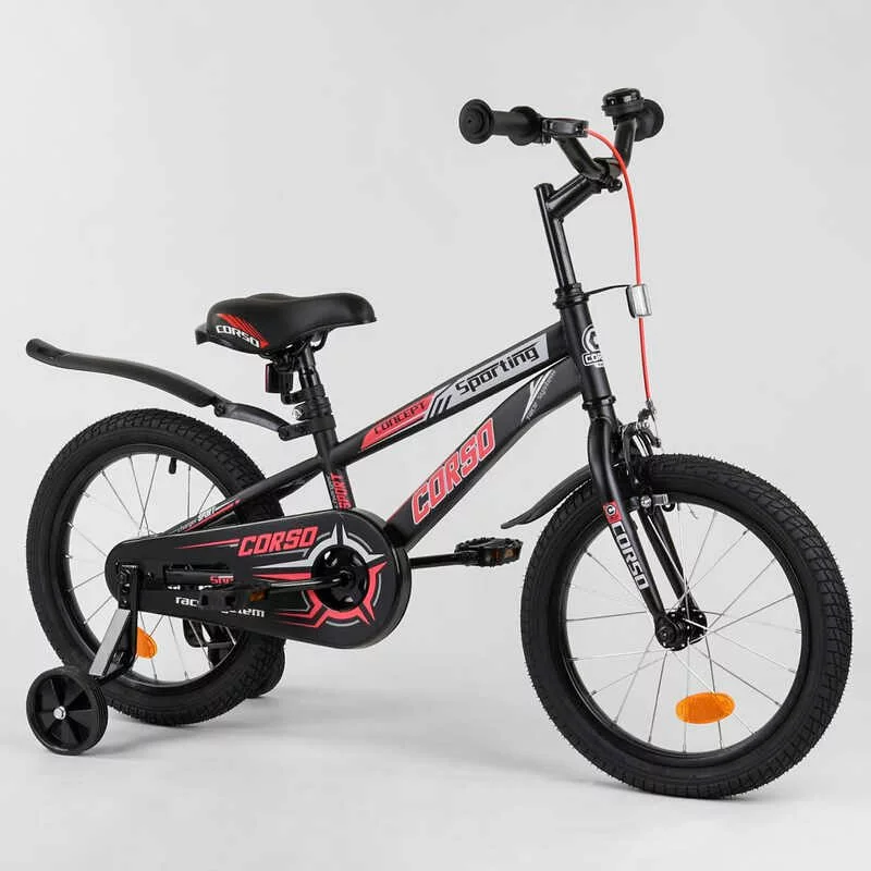 Велосипед 16 ""дюймів 2-х колісний"" CORSO ""R-16119 (1) ручне гальмо, дзвіночок, доп. колеса, ЗІБРАНИЙ НА 75% в коробці
