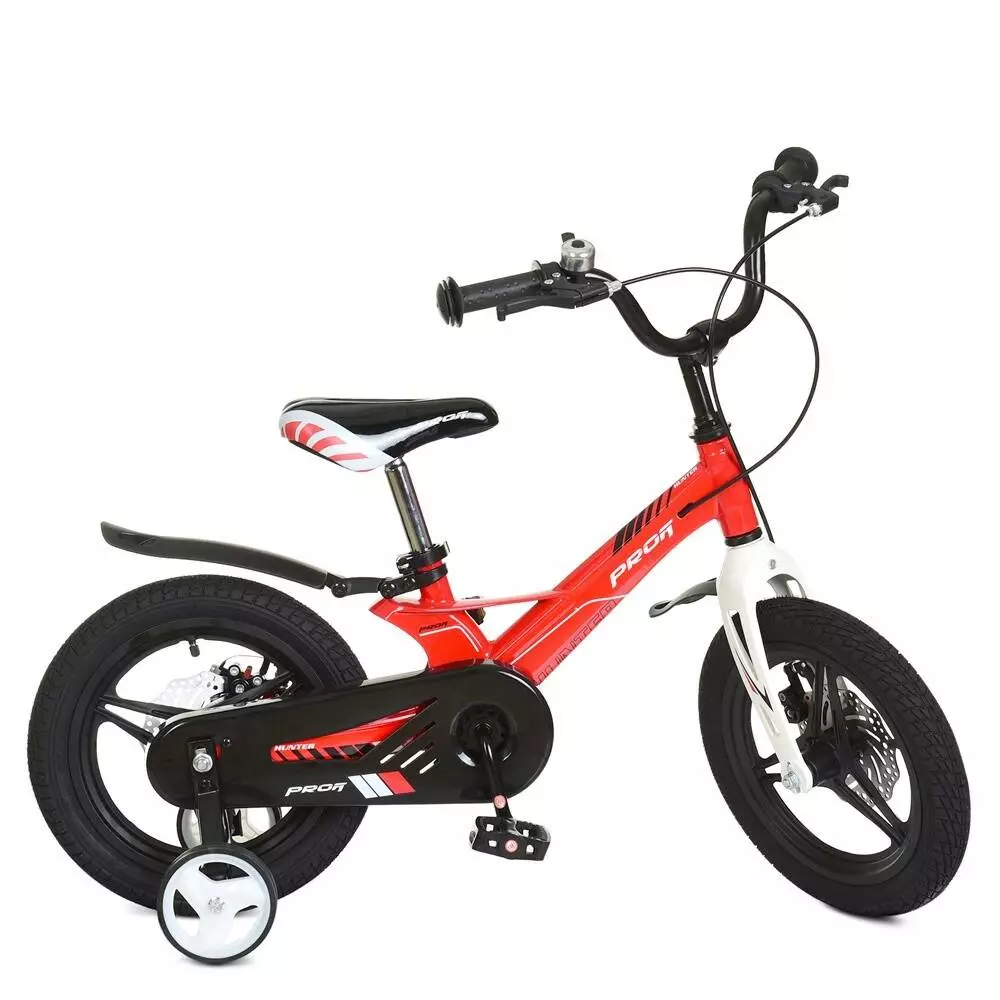 Велосипед дитячий PROF1 14д. LMG14233 Hunter, магнез.рама, вилка,кол.,диск.гальма.,дзвінок,червоний.