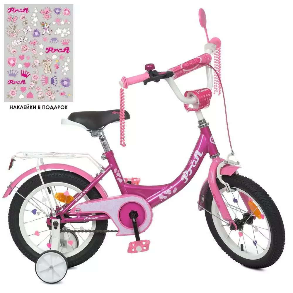 Фотография 1 товарной позиции интернет-магазина детских игрушек www.smarttoys.com.ua Велосипед дитячий PROF1 14д. Y1416 Princess, SKD45, дзвінок, ліхтар, дод. колеса, фуксія.