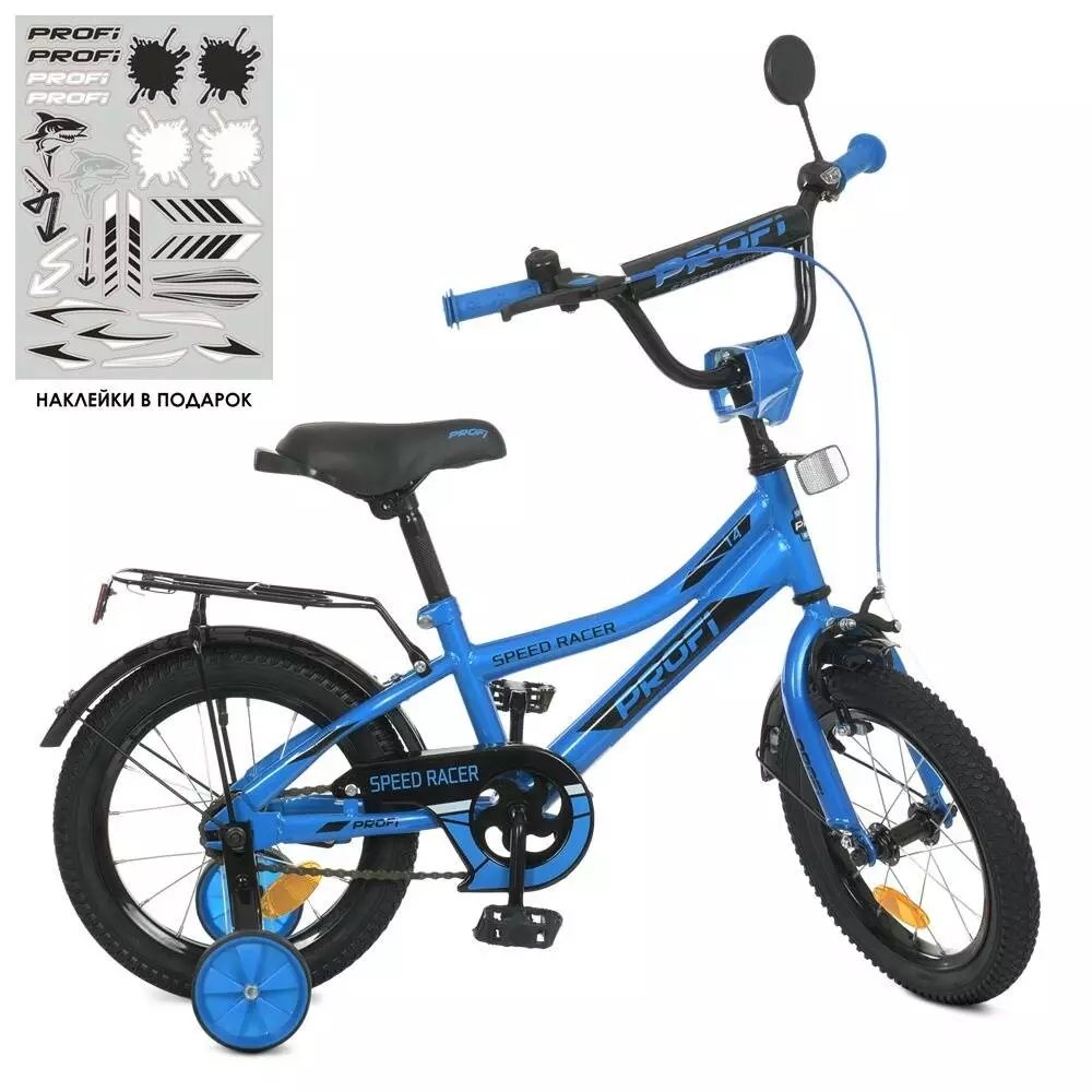 Фотография 1 товарной позиции интернет-магазина детских игрушек www.smarttoys.com.ua Велосипед дитячий PROF1 14д. Y14313 Speed racer, SKD45, синій, дзвінок, дод.колеса.