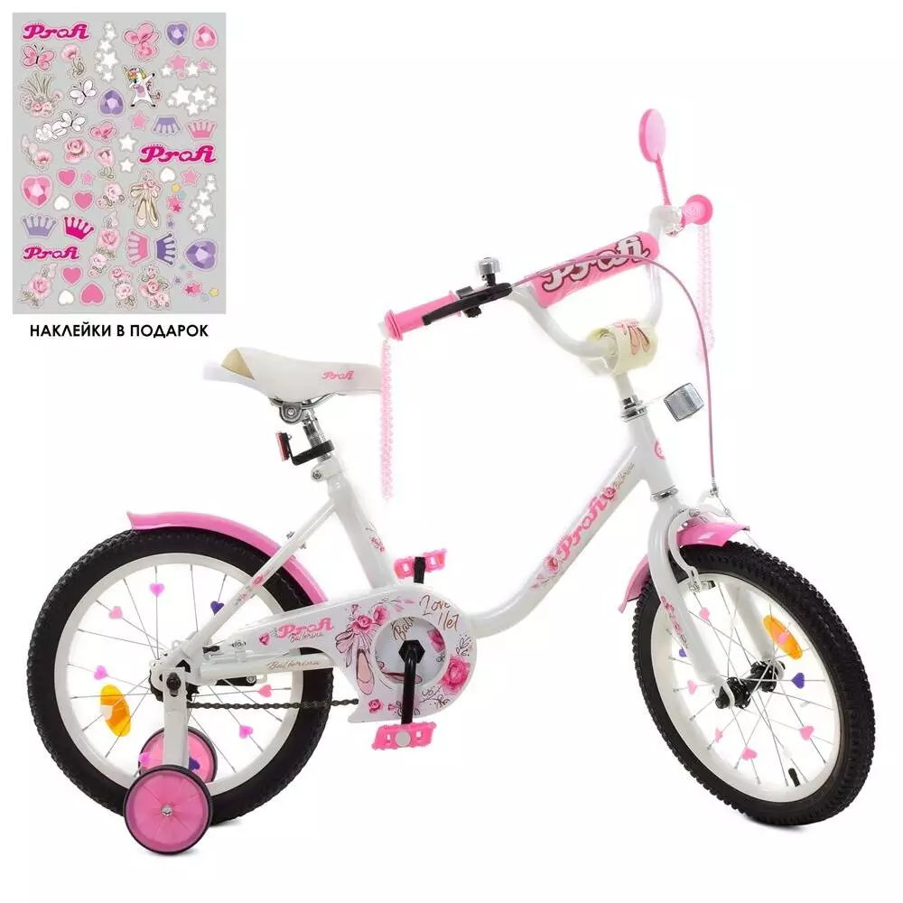 Фотография 1 товарной позиции интернет-магазина детских игрушек www.smarttoys.com.ua Велосипед дитячий PROF1 14д. Y1485 Ballerina, SKD45, дзвінок, ліхтар, дод.колеса, біло-рожевий.