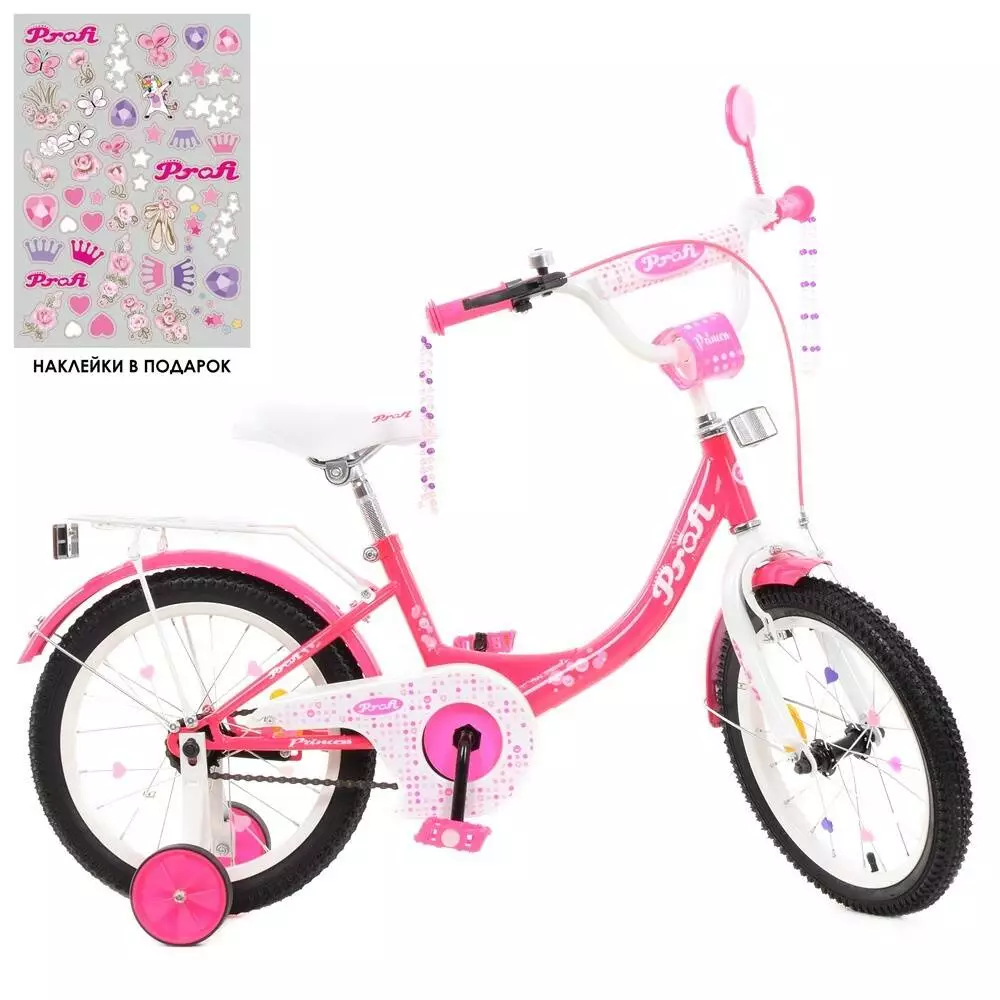 Фотография 1 товарной позиции интернет-магазина детских игрушек www.smarttoys.com.ua Велосипед дитячий PROF1 16 д. Y1613 Princess, дзвінок, дод. колеса, малиновий.