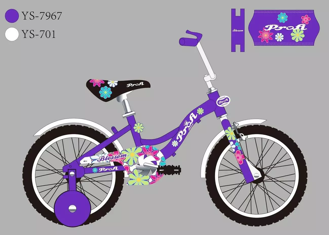 Фотография 1 товарной позиции интернет-магазина детских игрушек www.smarttoys.com.ua Велосипед дитячий PROF1 18д. Y18303N Blossom, SKD45, бузковий, дзвінок, дод.колеса.