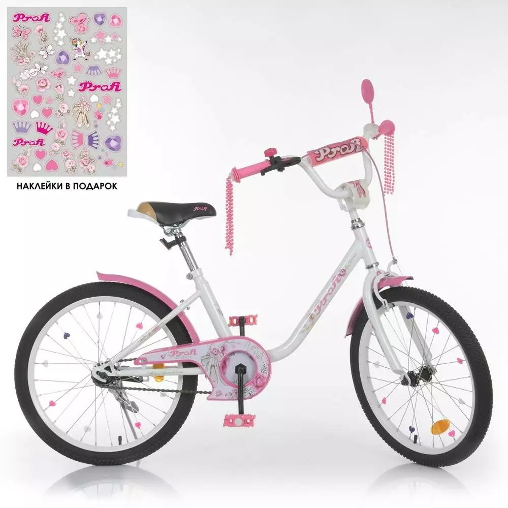 Фотография 1 товарной позиции интернет-магазина детских игрушек www.smarttoys.com.ua Велосипед дитячий PROF1 20д. Y2085 Ballerina, SKD45, дзвінок, ліхтар, підніжка, біло-рожевий.
