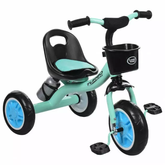 Характеристики дитячого велосипеда М 3197-4 Тип: триколісний, без батьківської ручки Матеріал рами: метал розміри: Габаритний розмір велосипеда: довжина, ширина, висота: 65 х 47 х 63.5 см Висота сидіння: 32.5 см Висота керма: 63 см Відстань від сидіння до керма: min/max: 31 см/36 см Колеса: Матеріал коліс: EVA Діаметр переднього колеса: 23 см Діаметр задніх коліс - 21 см Додатково: Накладки на кермі: є Сидіння: з м'якою накладкою, регульоване, ближче, далі до керма, 2 положення На кермі: ковзаючі ручки Кошик для іграшок: на кермі Додатково: пляшечка, довжина 20 см. Поставляється у розібраному вигляді