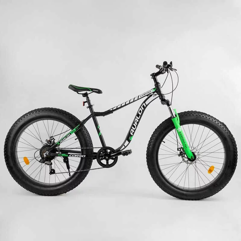 Велосипед Спортивний CORSO «Avalon» 26"" дюймів 95583 (1) ФЕТБАЙК, рама алюмінієва, обладнання Shimano 7 швидкостей, зібраний на 75%
