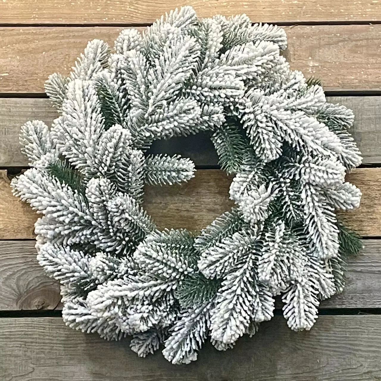 Декоративный рождественский венок изготовлен из переплетенных веток искусственной елки. Он изготовлен из 100% литой хвои, а его иголочки напоминают живую елку, но они более мягкие и не колючие. Объемное густое напыление на венке, реалистично имитирует снег, только что упавший на ветки пушистыми хлопьями. Материалом распыления является натуральный хлопок, он экологичен и не имеет запаха, безопасен для детей и взрослых.