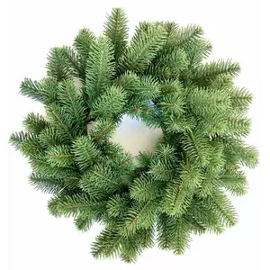 Новогодний декоративный венок диаметром 45 см представляет собой переплетенные ветки искусственной ели. Изготовлен из 100% литой хвои. Иголочки как у живой ёлки, но более мягкие и не колючие. Без декора.