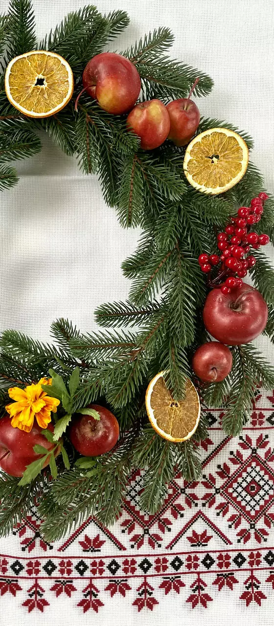 Новогодний декоративный венок диаметром 50 см представляет собой переплетенные ветки искусственной ели.  Изготовлен из 100% литой хвои. Иголочки как у живой ёлки, но более мягкие и не колючие. Без декора.