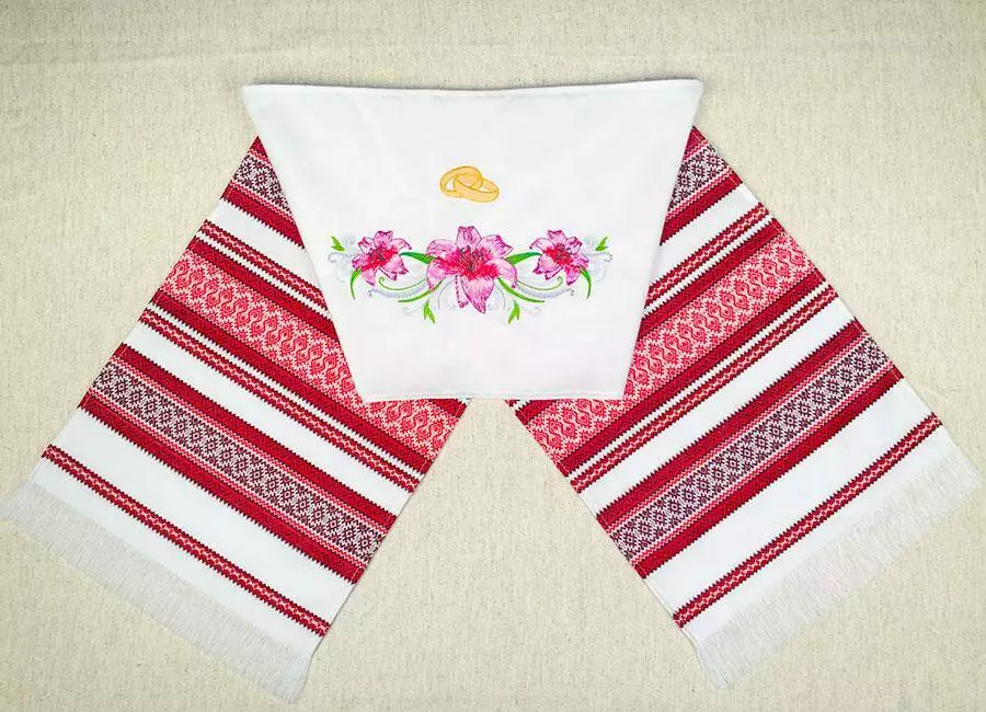 Весільним рушником прикрашають ікони, якими благословляють молодят батька. Коровай завжди несуть на весільному рушнику. Молодятам кладуть весільний рушник під ноги, і звичайно ж використовують весільний рушник для звязування рук.