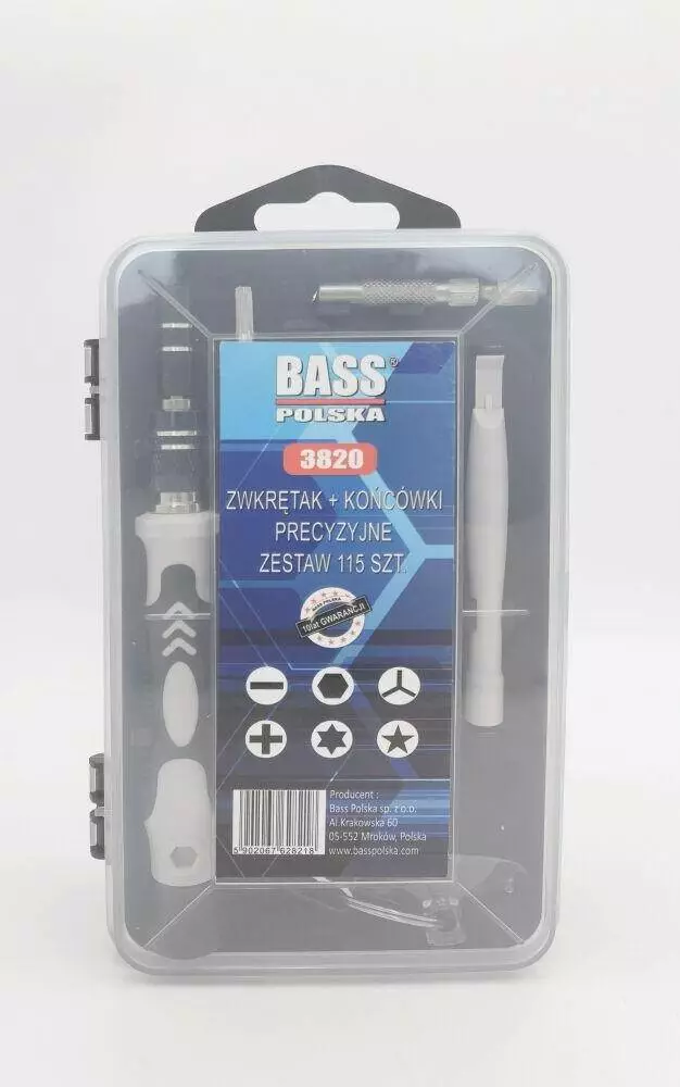 Набір прецизійних викруток для електроніки 115 в 1 з подовжувачем у кейсі Bass Polska 3820