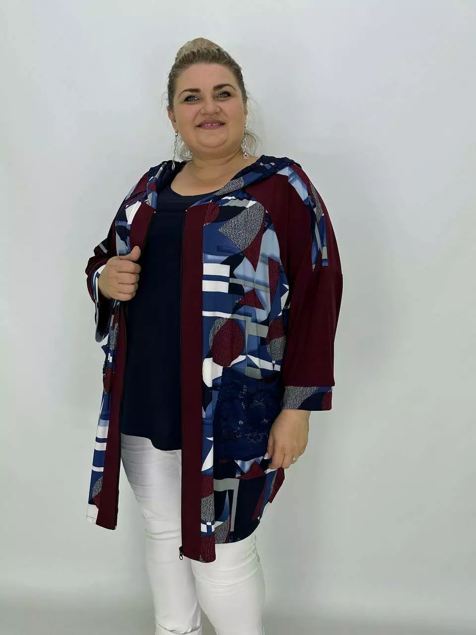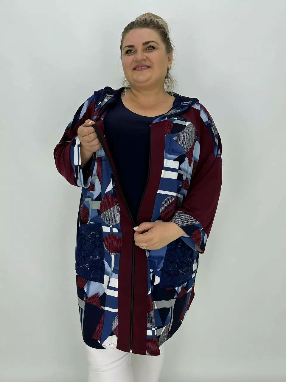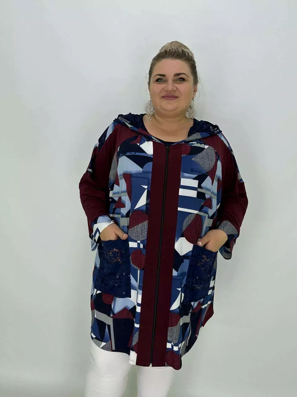 Вільна кофта на змійки з корейської олії з ажурним капюшоном та кишенями.