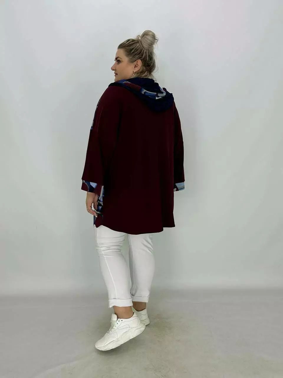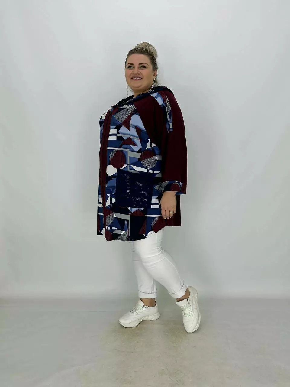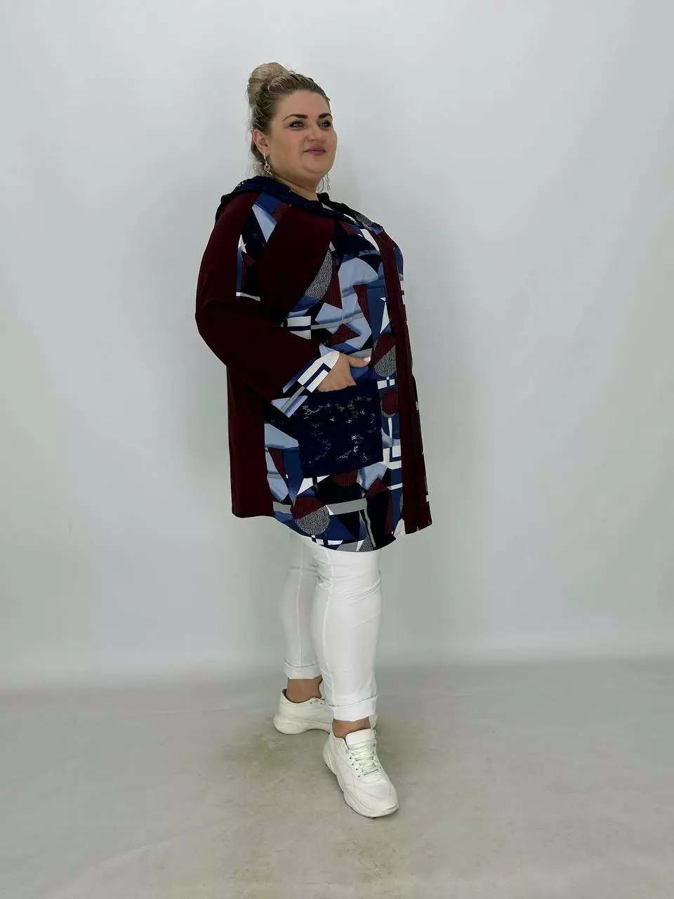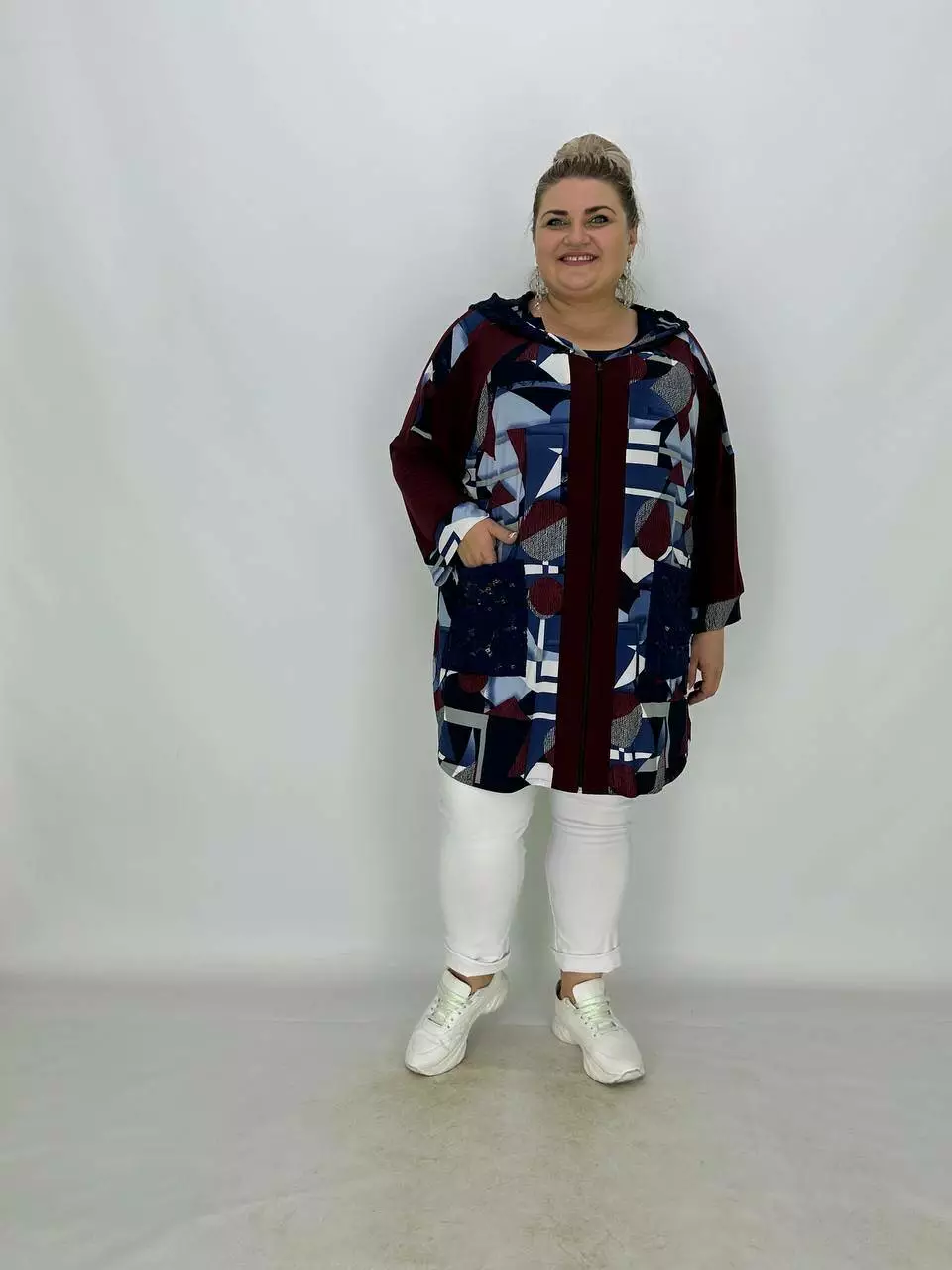 Вільна кофта на змійки з корейської олії з ажурним капюшоном та кишенями.