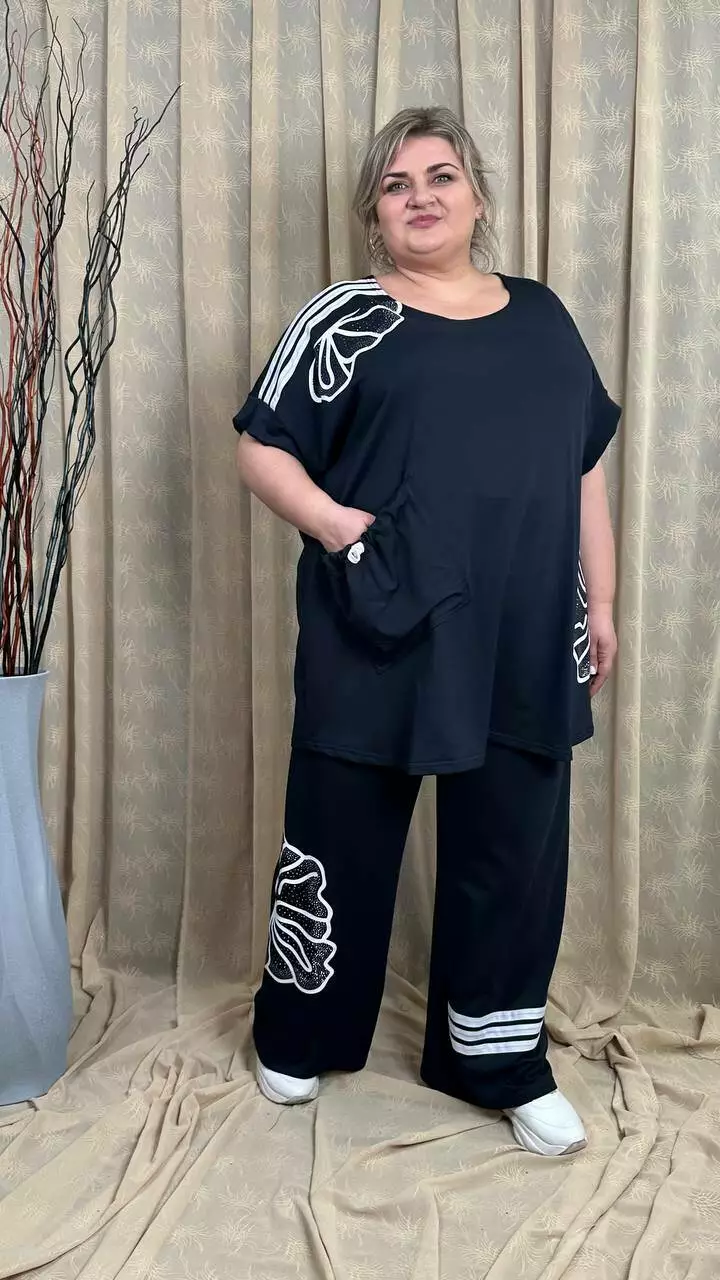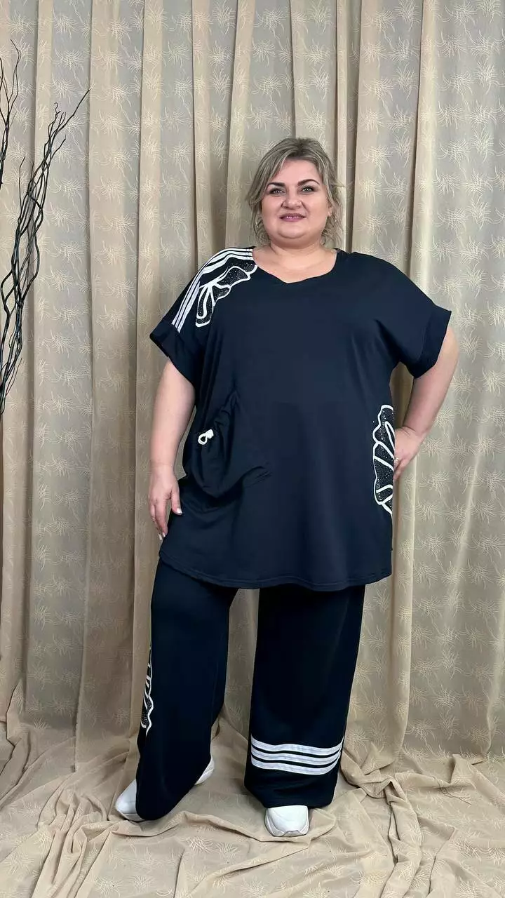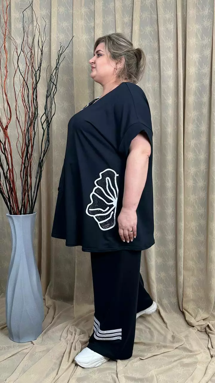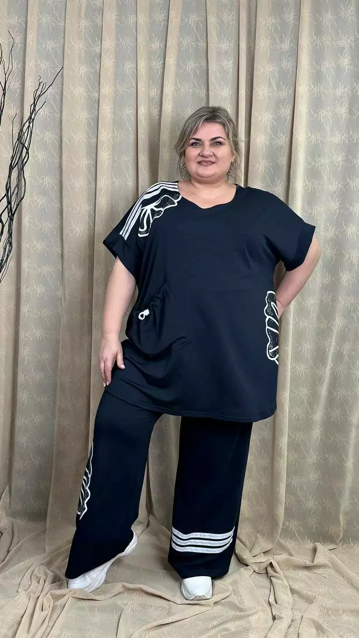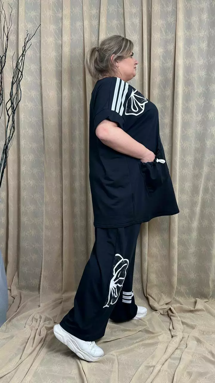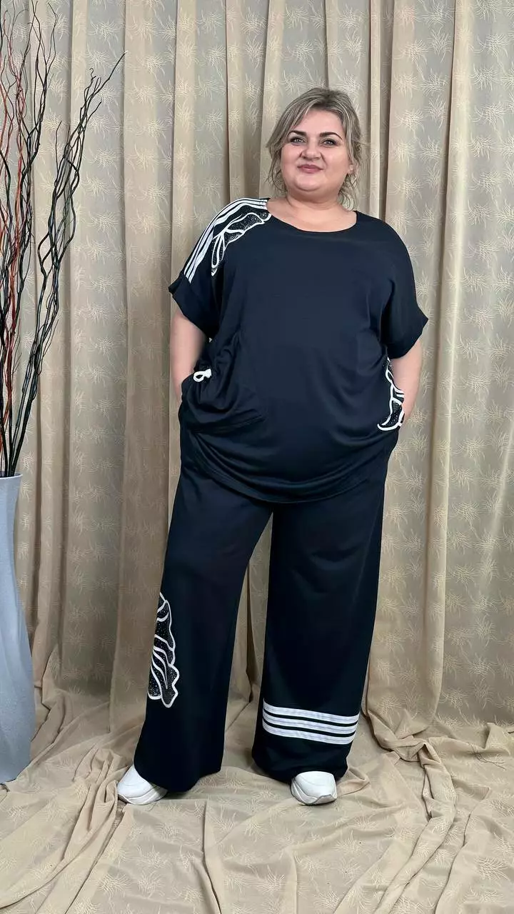 Вільний костюм із трикотажної тканини - двонитка, середньої щільності та гарної розтяжності.