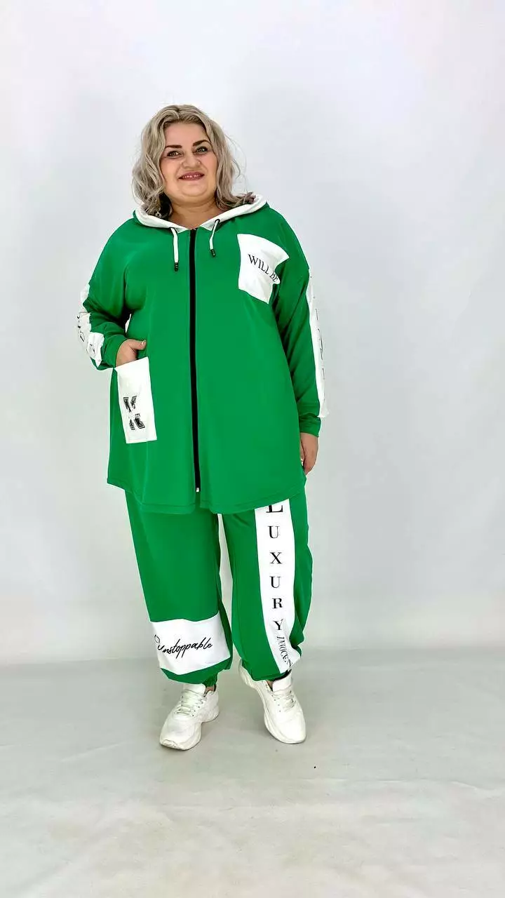 Вільний костюм оверсайз із широкими брюками на манжеті з двонитки.