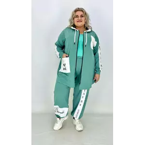 манжеті, кишені у бічних швах. Штани-широкі, пояс на резинці з
