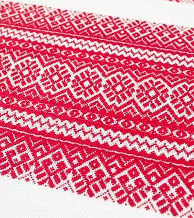 Традиційний червоний рушник, який широко використовується в українських обрядах.