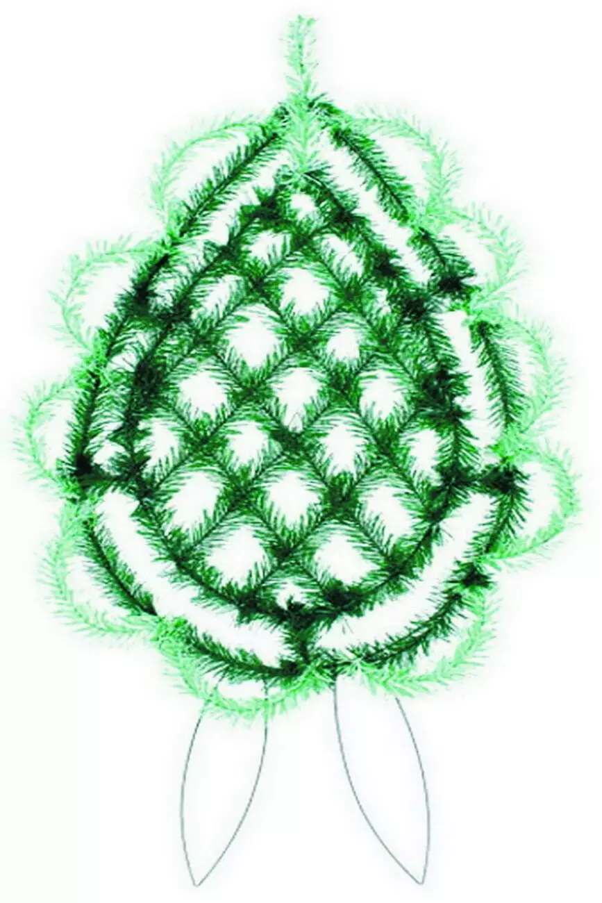 Вінок зі штучної хвої, по центру заплетений сіткою, по краю заплетений кольоровою хвоєю, розмір 130*70*10 см.