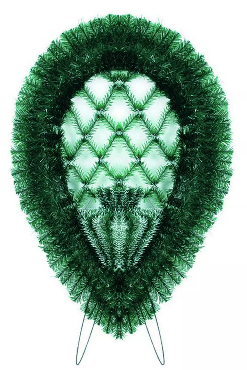 Вінок зі штучної хвої у формі щита, по центру заплетений сіткой, к