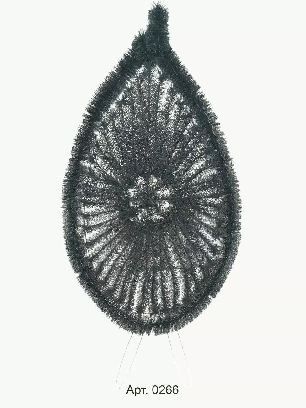 Вінок зі штучної хвої, зашитий по центру, з йоршом по краю, розмір 155*87*23 см.
