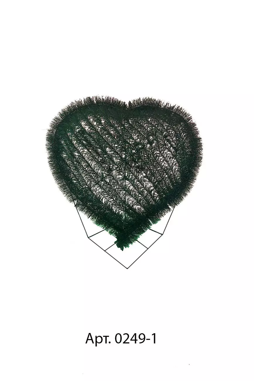 Вінок зі штучної хвої у вигляді серця, зашитий по діагоналі, по краю оздоблений йоршом, розмір 65*73*44см.