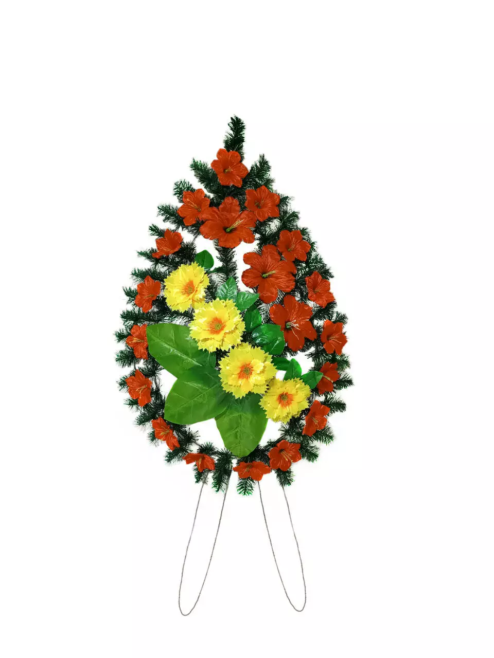 Ритуальний вінок зі штучної хвої розміром 120*55*14 см. Вінок