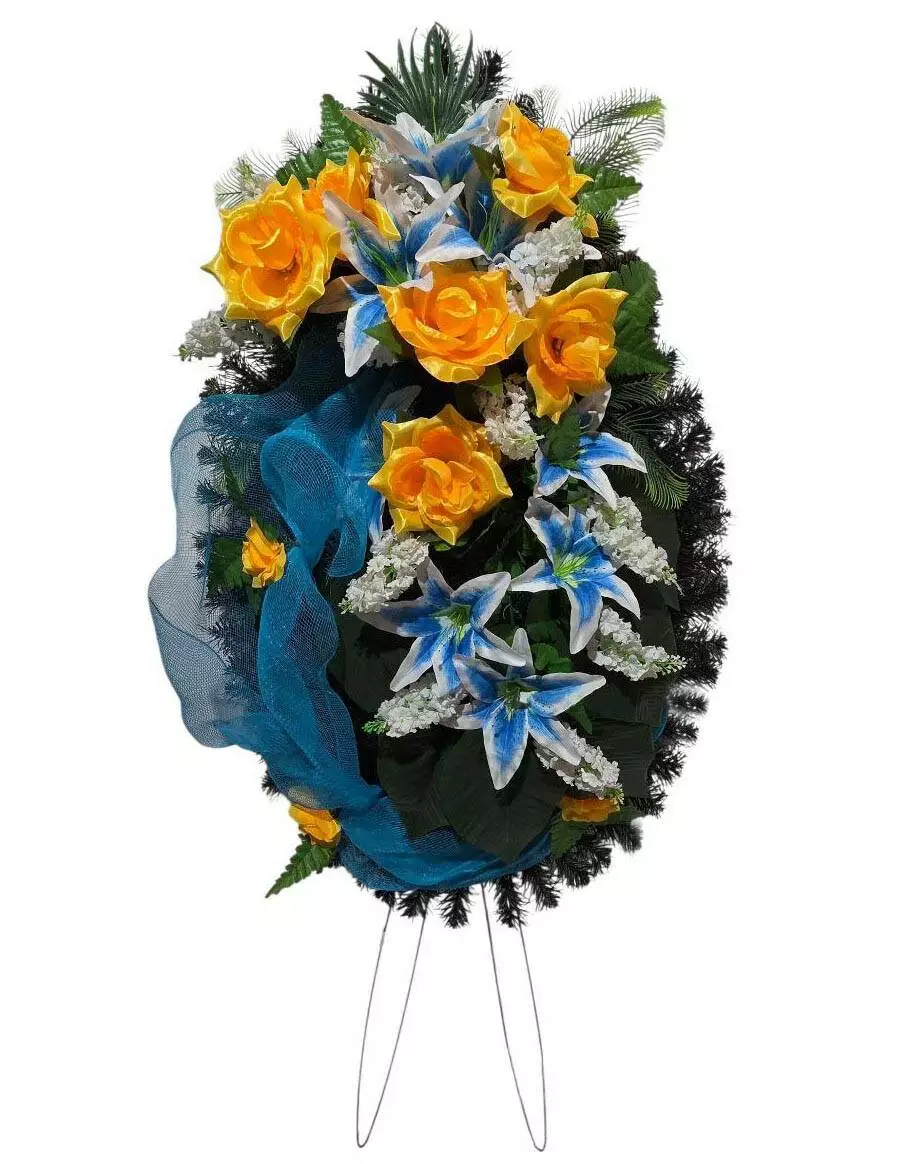 Ритуальний вінок зі штучної хвої, розміром 144*63*15 см. Вінок