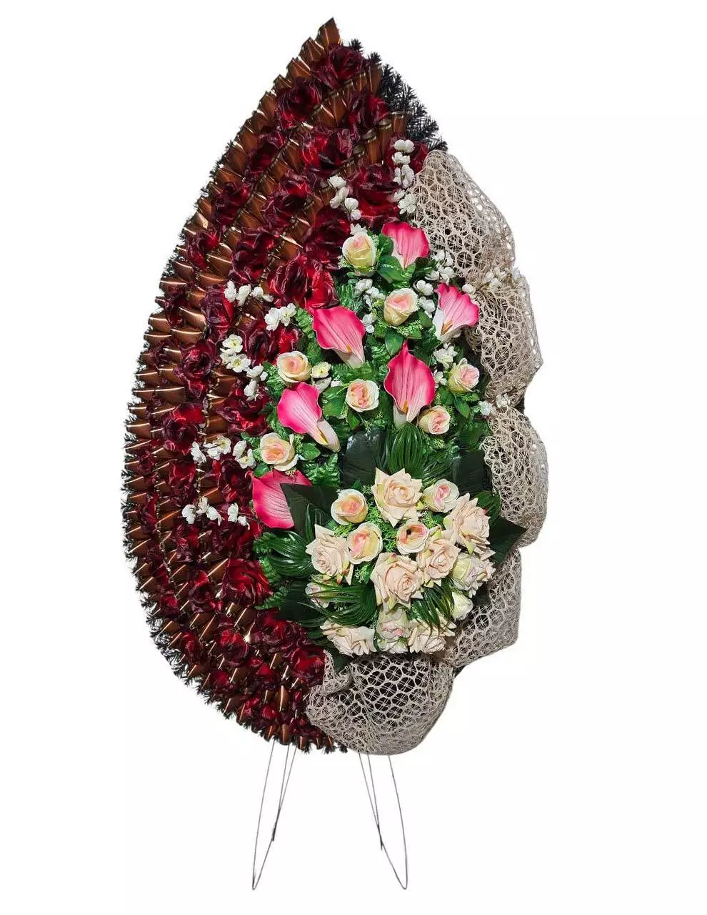 Ритуальний вінок зі штучної хвої розміром 211*99*23 см. Вінок