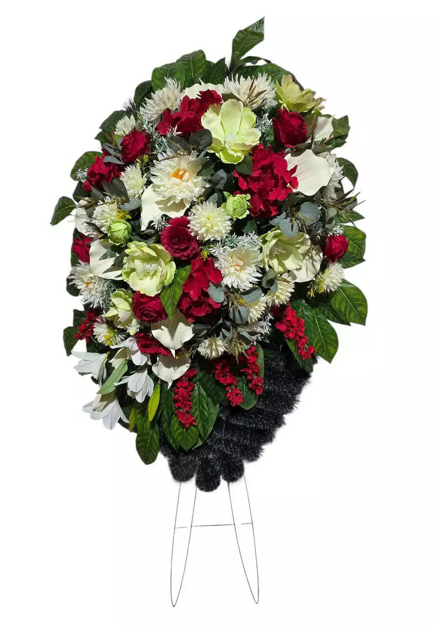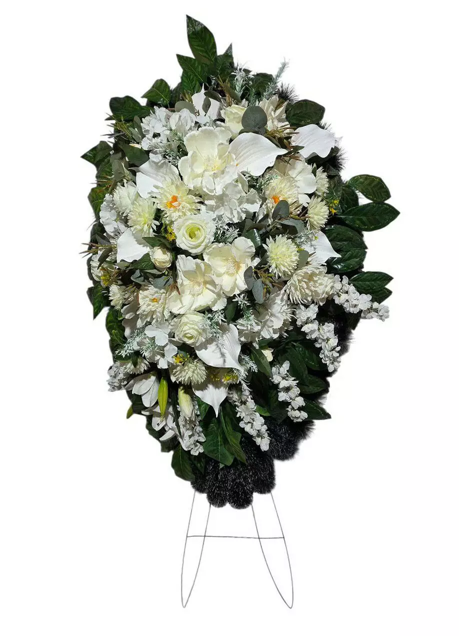 192*84*21 см. Вінок прикрашений букетами лілії, хризантеми,
