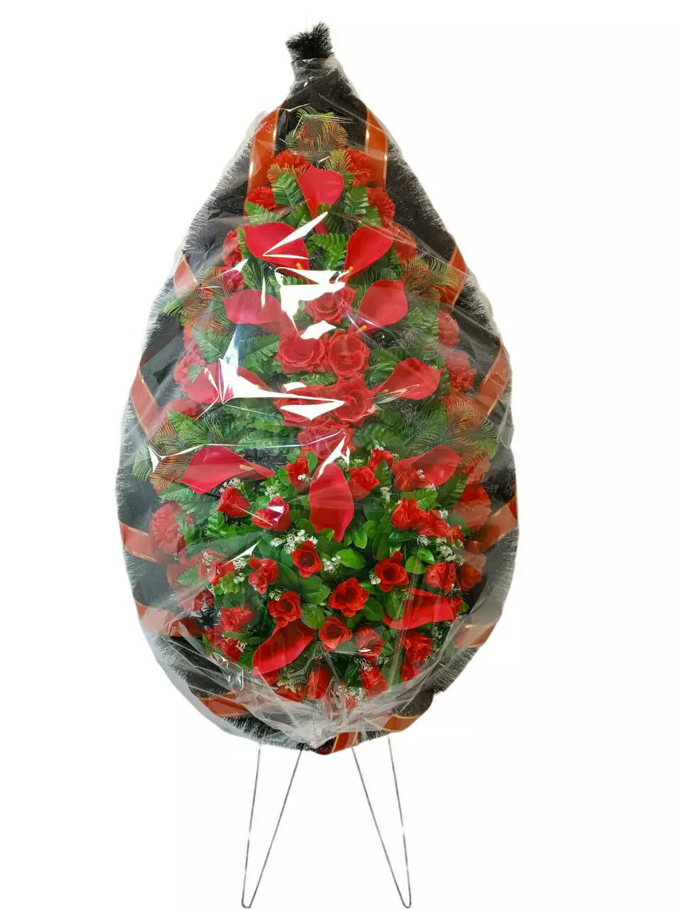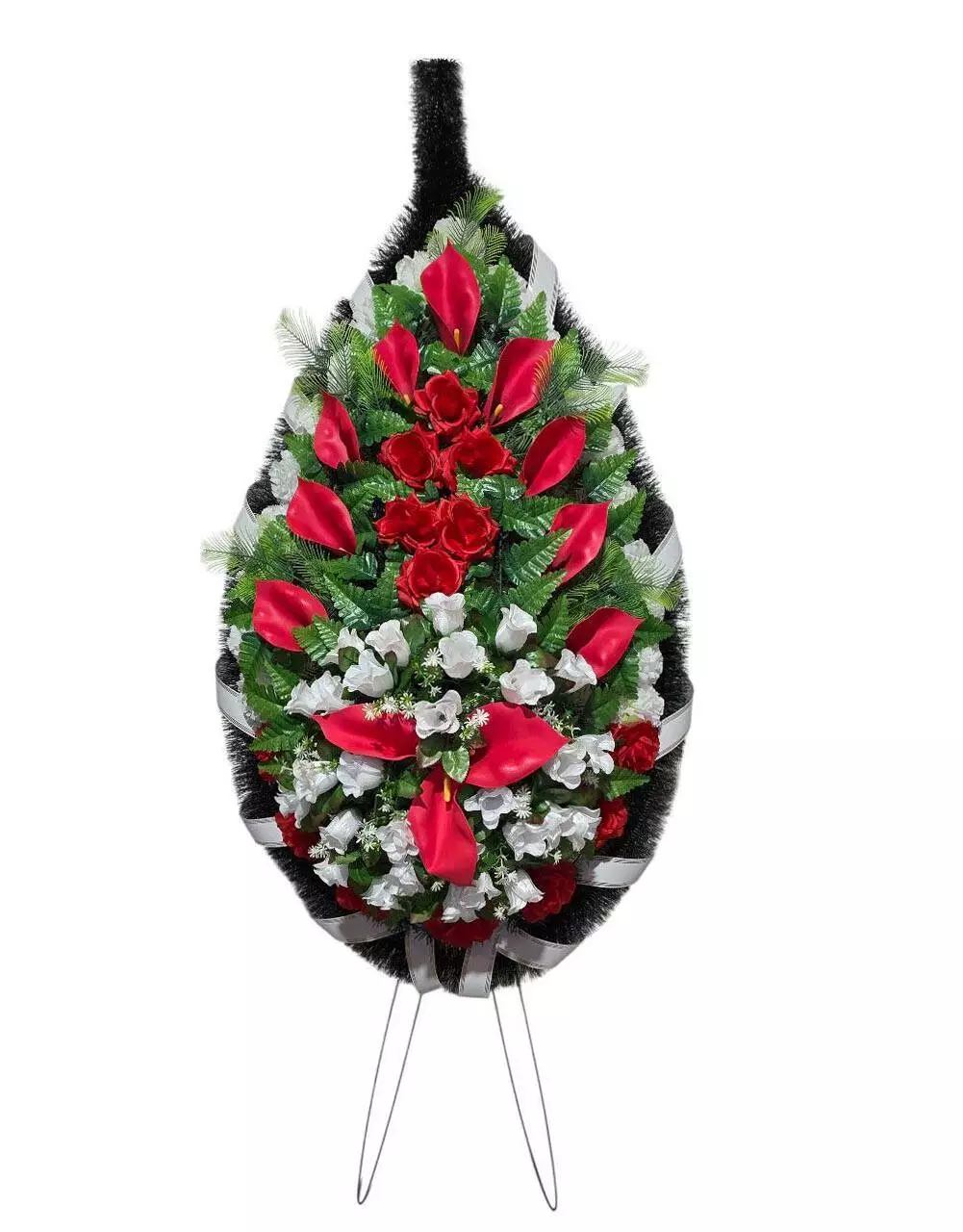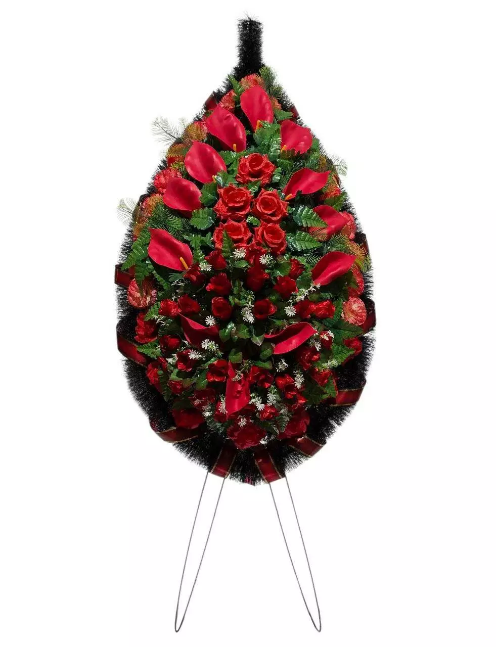 Ритуальний вінок зі штучної хвої розміром 165*73*16 см. Вінок