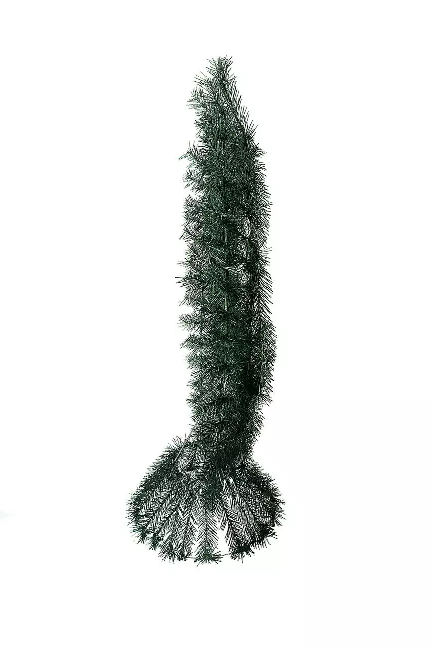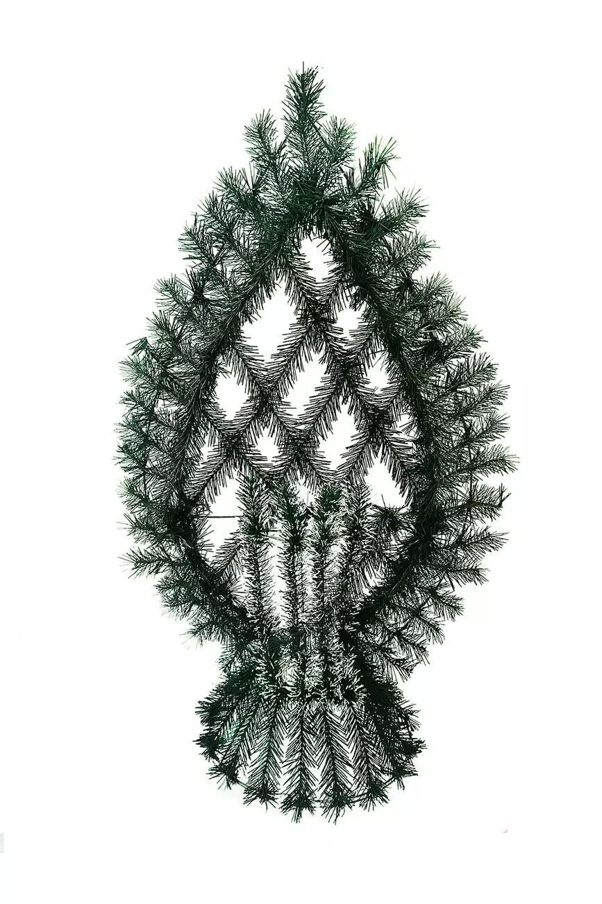 Вінок двокольоровий зі штучної хвої у вигляді свічки з сіткою і вазою в центрі свічки, заплетеною по колу відрізками хвої, розмір 100*60*35 см.