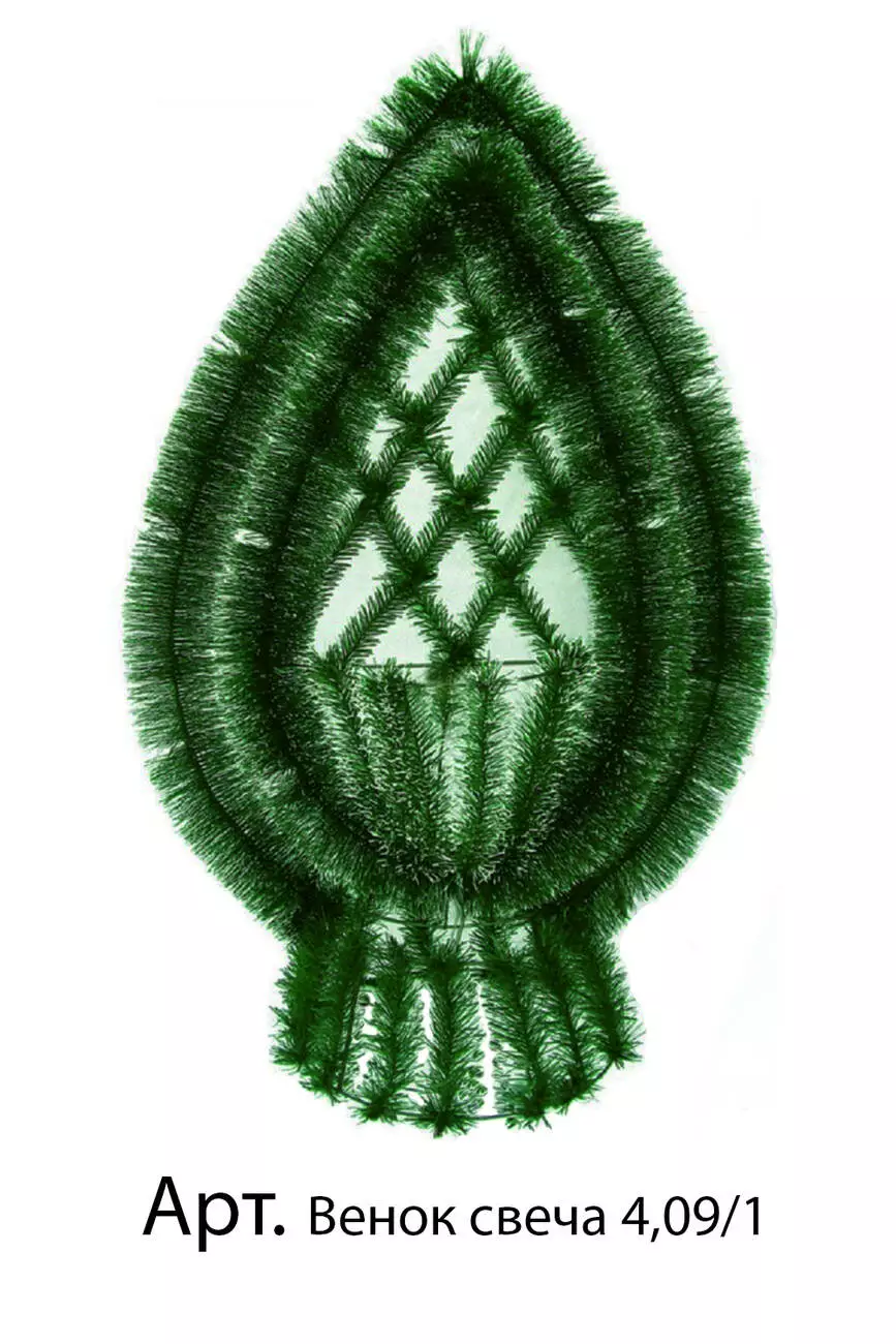 Вінок зі штучної хвої у вигляді свічки з сіткою і вазою в центрі свічки, оздоблений по колу подвійним йоршом, 104*62*34 см.