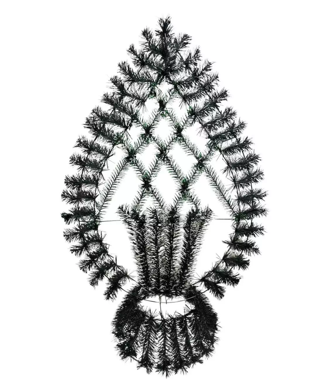 Вінок зі штучної хвої у вигляді свічки на круглій підставці з сіткою і вазою в центрі свічки, заплетеною по колу відрізками хвої, розмір 96*59*35 см.