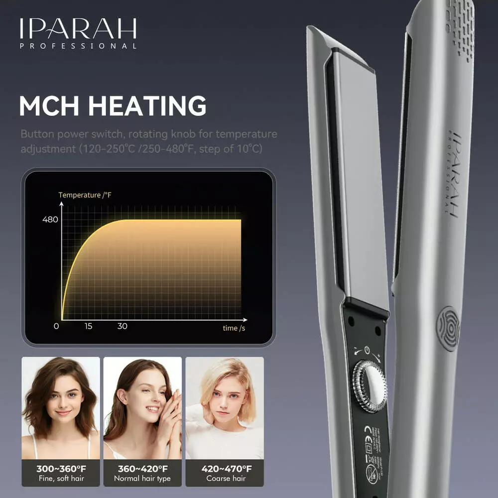 Професійний електричний випрямляч волосся IPARAH P‑130 MCH Electric Hair Straightener — це сучасний прилад для створення ідеально гладкого, рівного та доглянутого волосся. Пристрій оснащений нагрівальними пластинами з керамічним покриттям та ефективним MCH-нагрівачем, який забезпечує швидке та рівномірне прогрівання для стабільного результату. Діапазон регульованої температури дозволяє підібрати оптимальний режим для різних типів волосся, а LED/LCD-індикатор робить керування простим та наочним. Вбудована функція автоматичного відключення підвищує безпеку експлуатації, а кабель із обертанням на 360° забезпечує зручність роботи. Цей випрямляч підходить як для домашнього використання, так і професійного застосування в салоні.