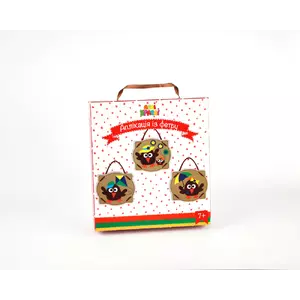 На оборотній частині коробки вказана покрокова інструкция. Не забувайте по закінченню роботи покласти аплікацію під щось важке для остаточної фіксації фетру. Для напівперлин краще підходить гарячий клей або клей миттєвого висихання. Для безпеки юних майстрів, в наборі немає даного клея.