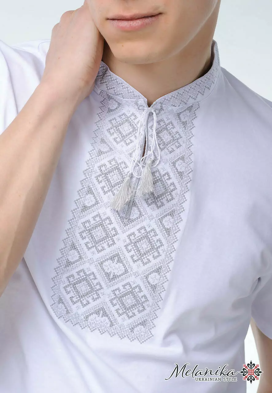 Для створення цієї моделі ми використали найякіснішу бавовну. Унікальний вишитий орнамент виконаний всіма відтінками сірого кольору у вигляді стійки.