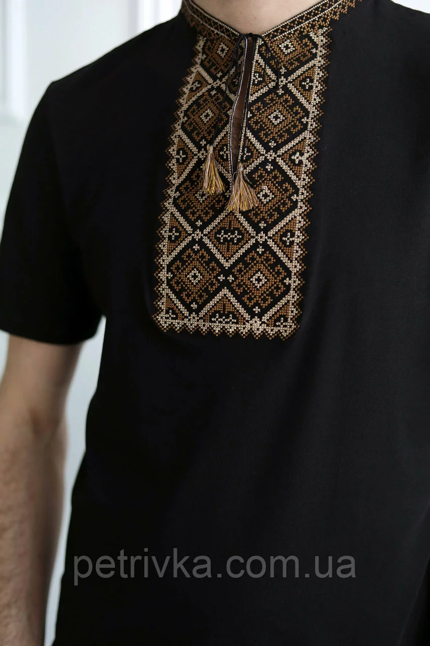 Футболка з коротким рукавом, машинна вишивка хрестиком комірець