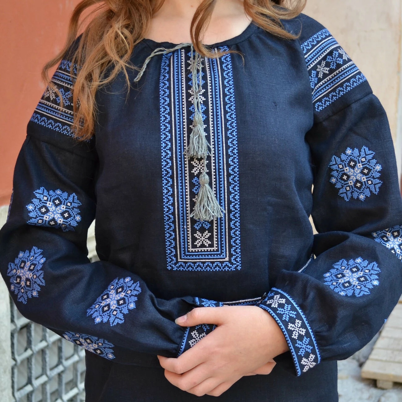 Модель: Панянка з синьою вишивкою.