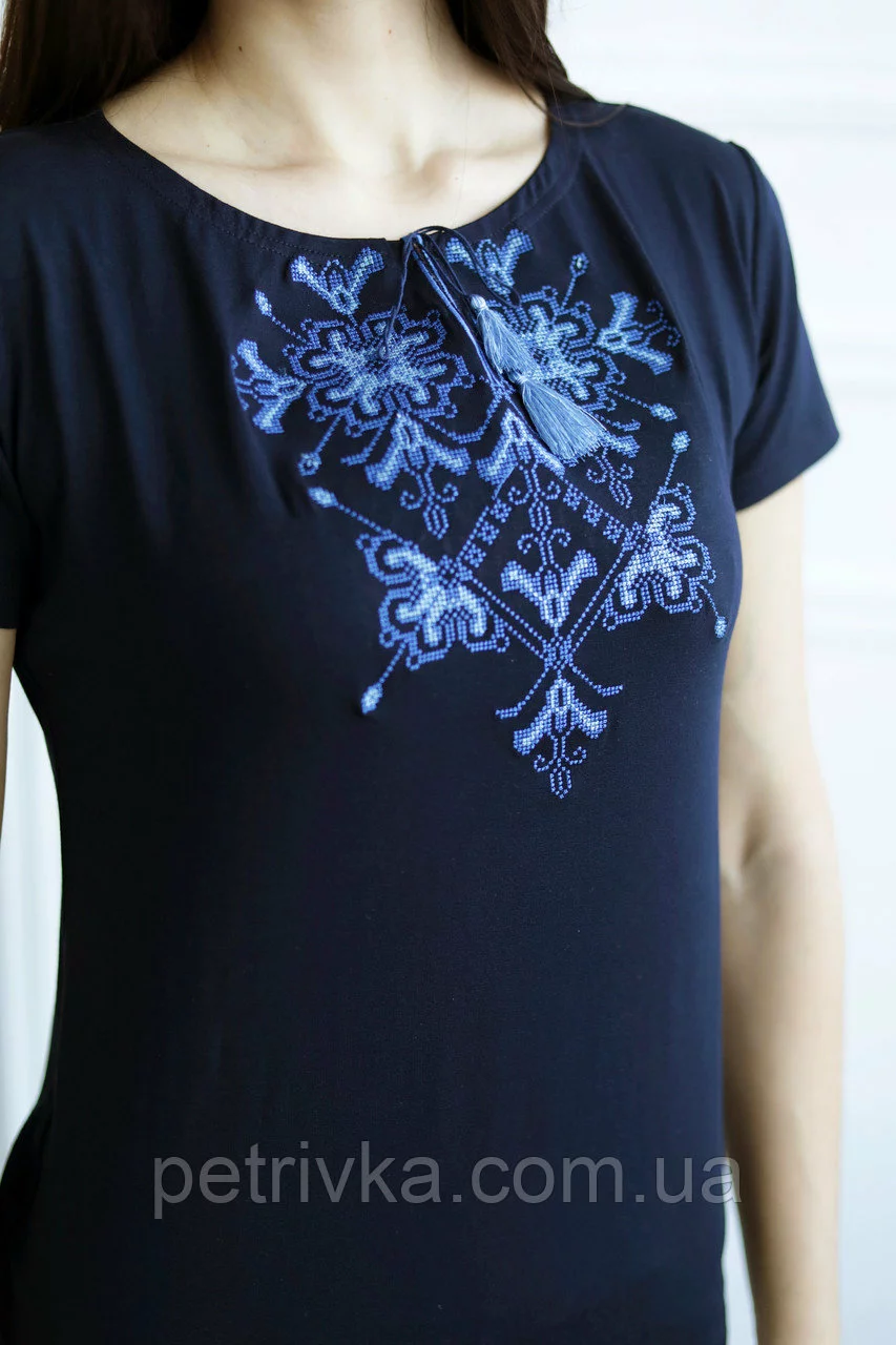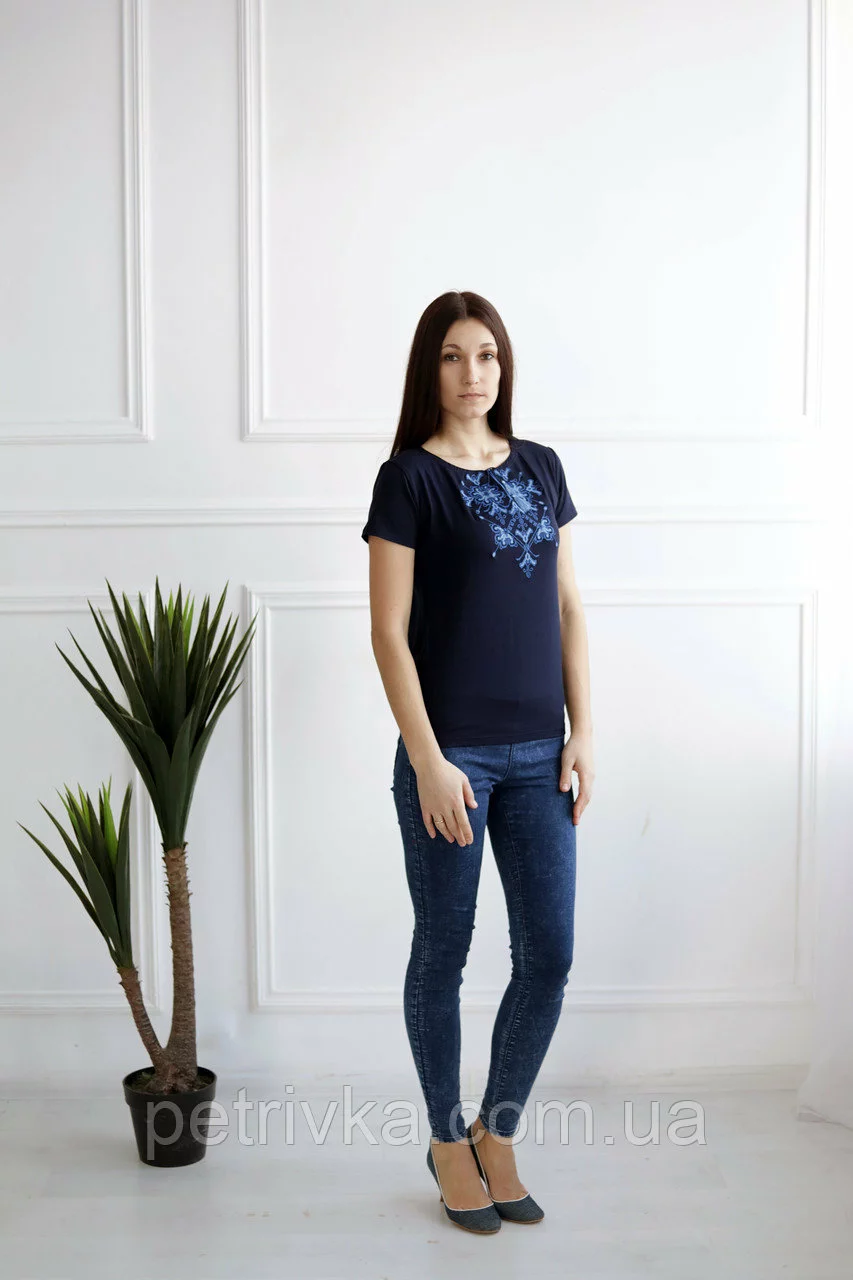 Вишита жіноча футболка з елементами вишивки орнамент