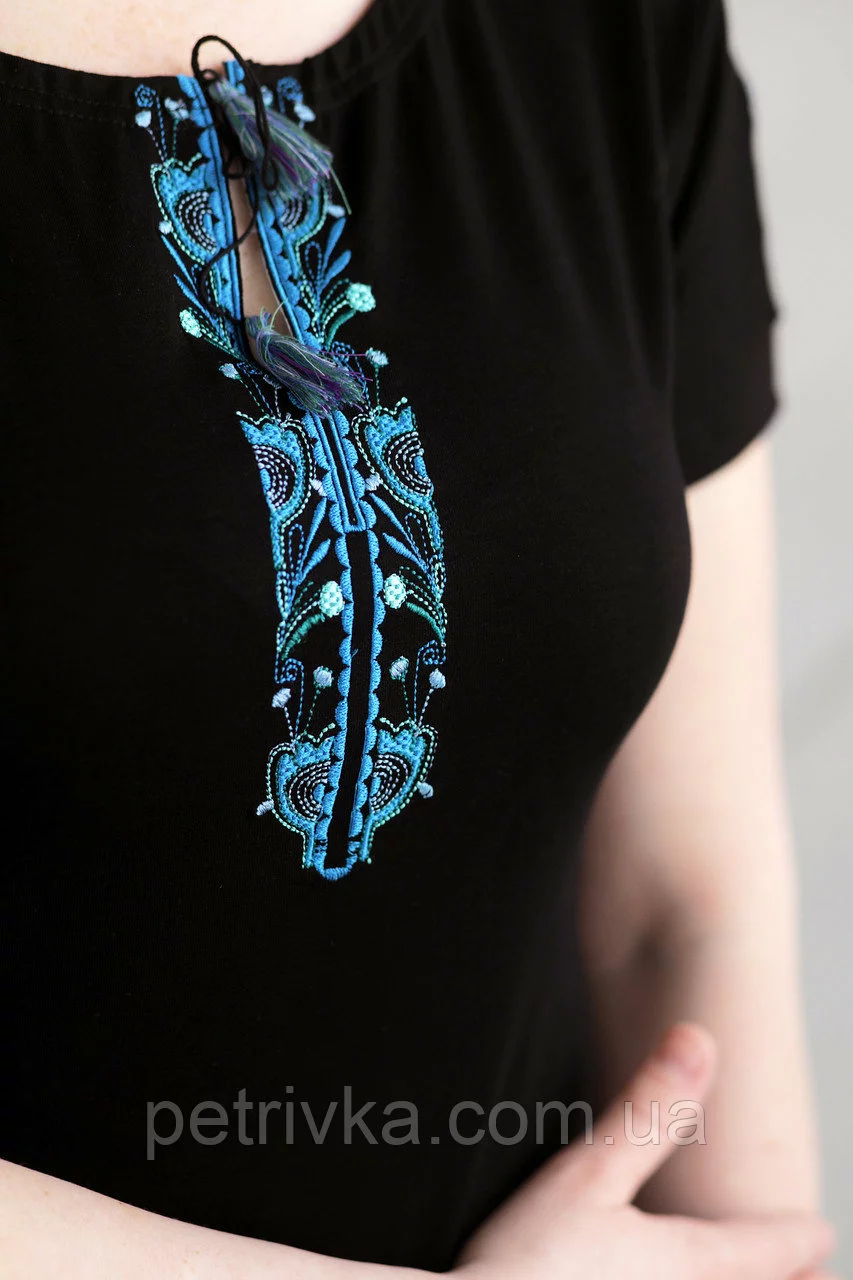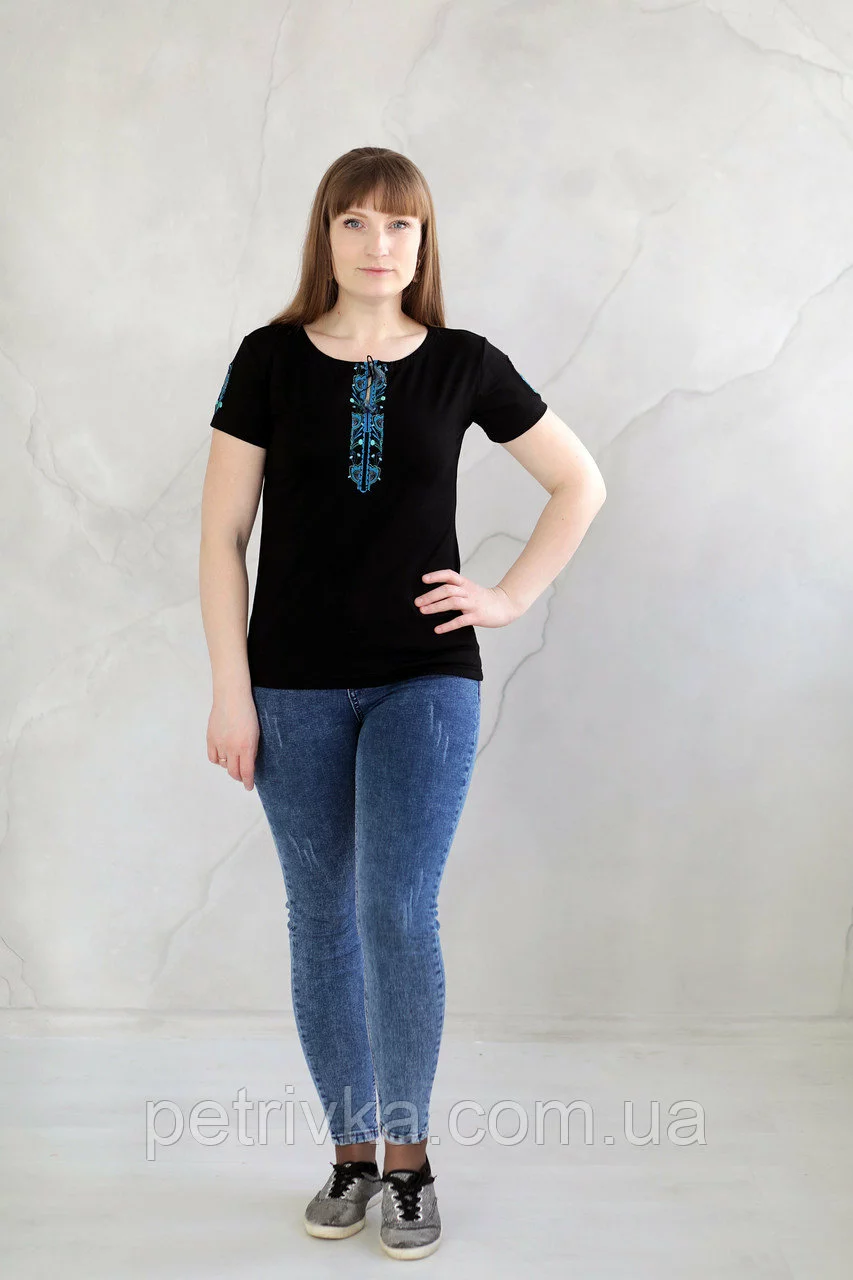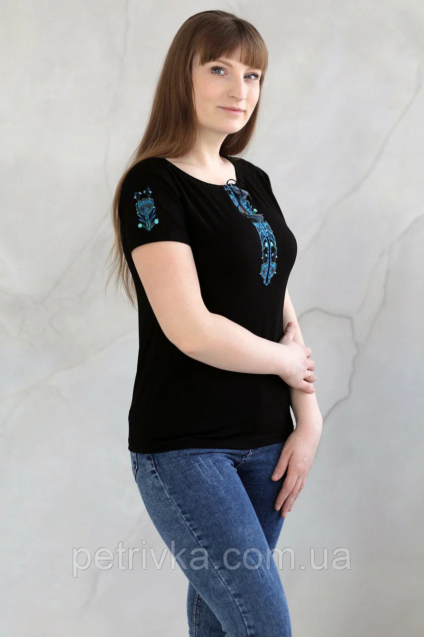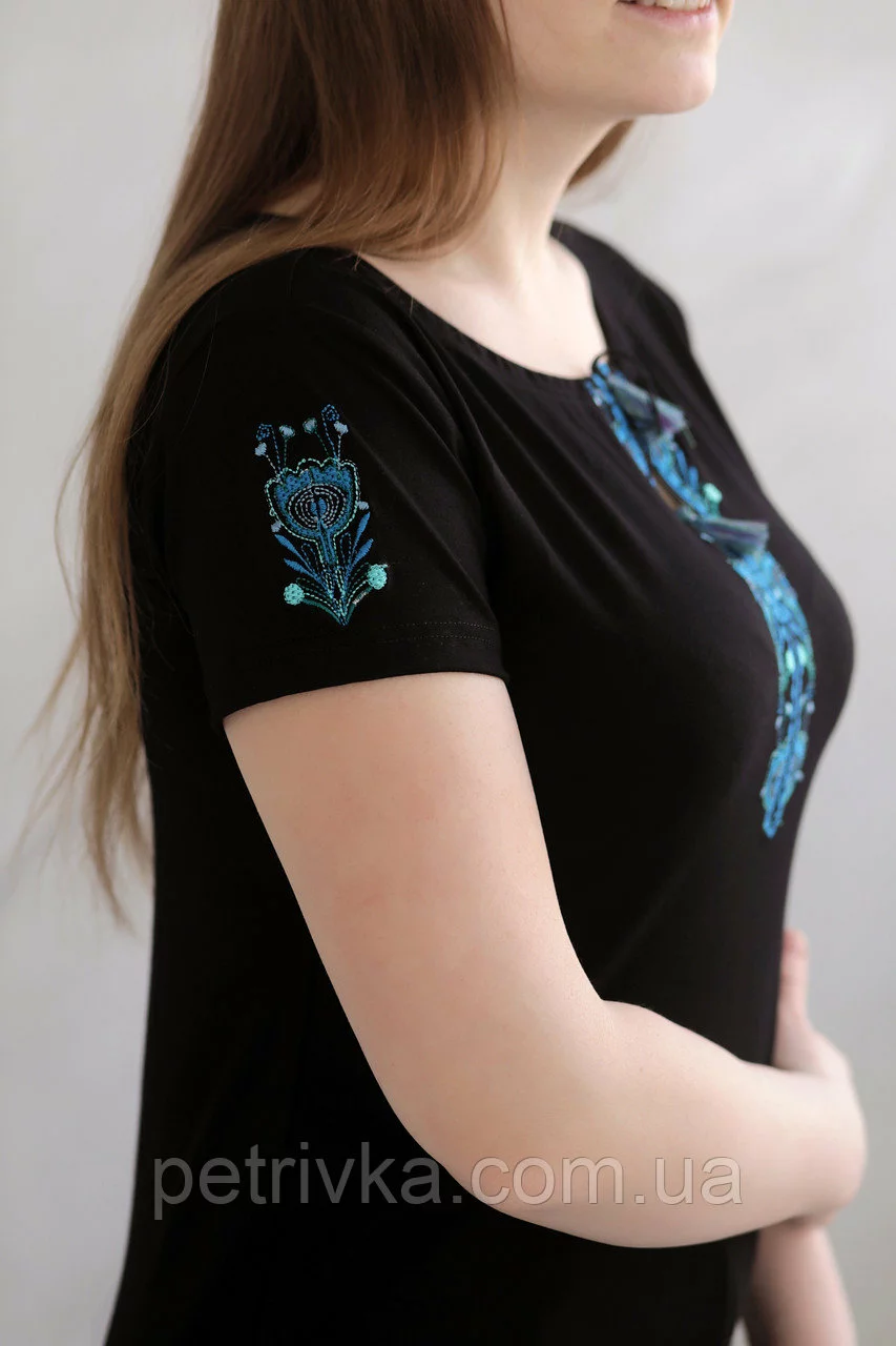 Жіноча вишита футболка, з вишитим рукавом