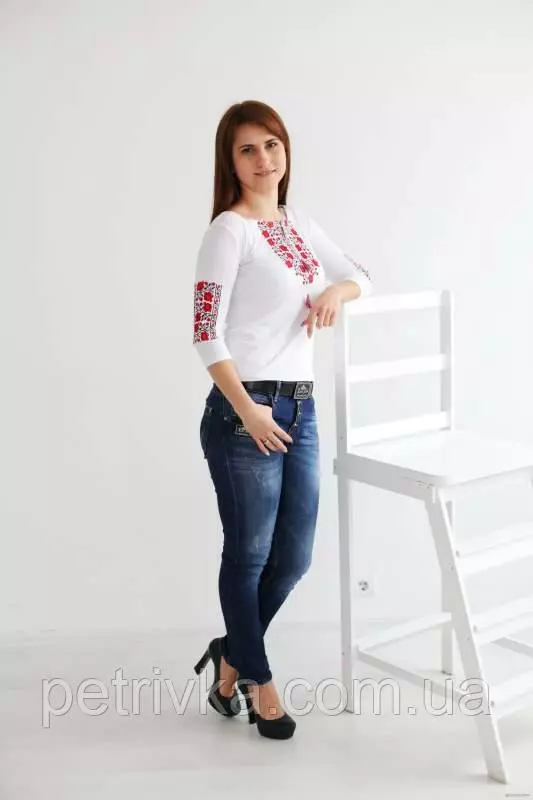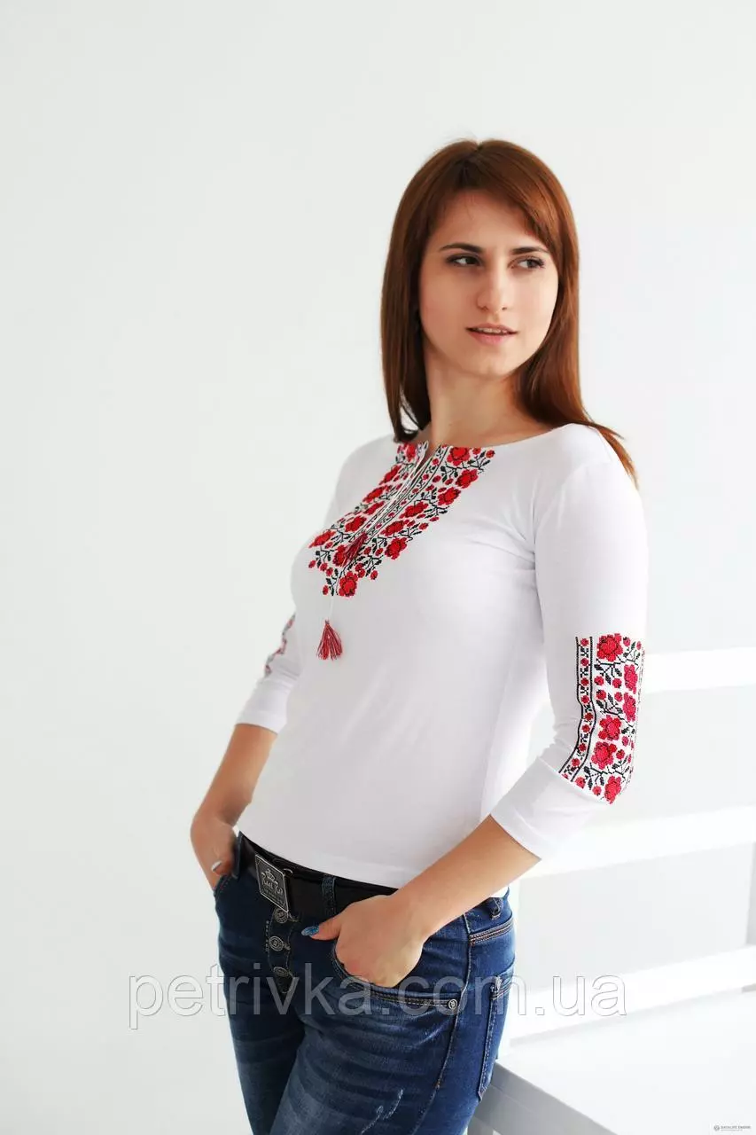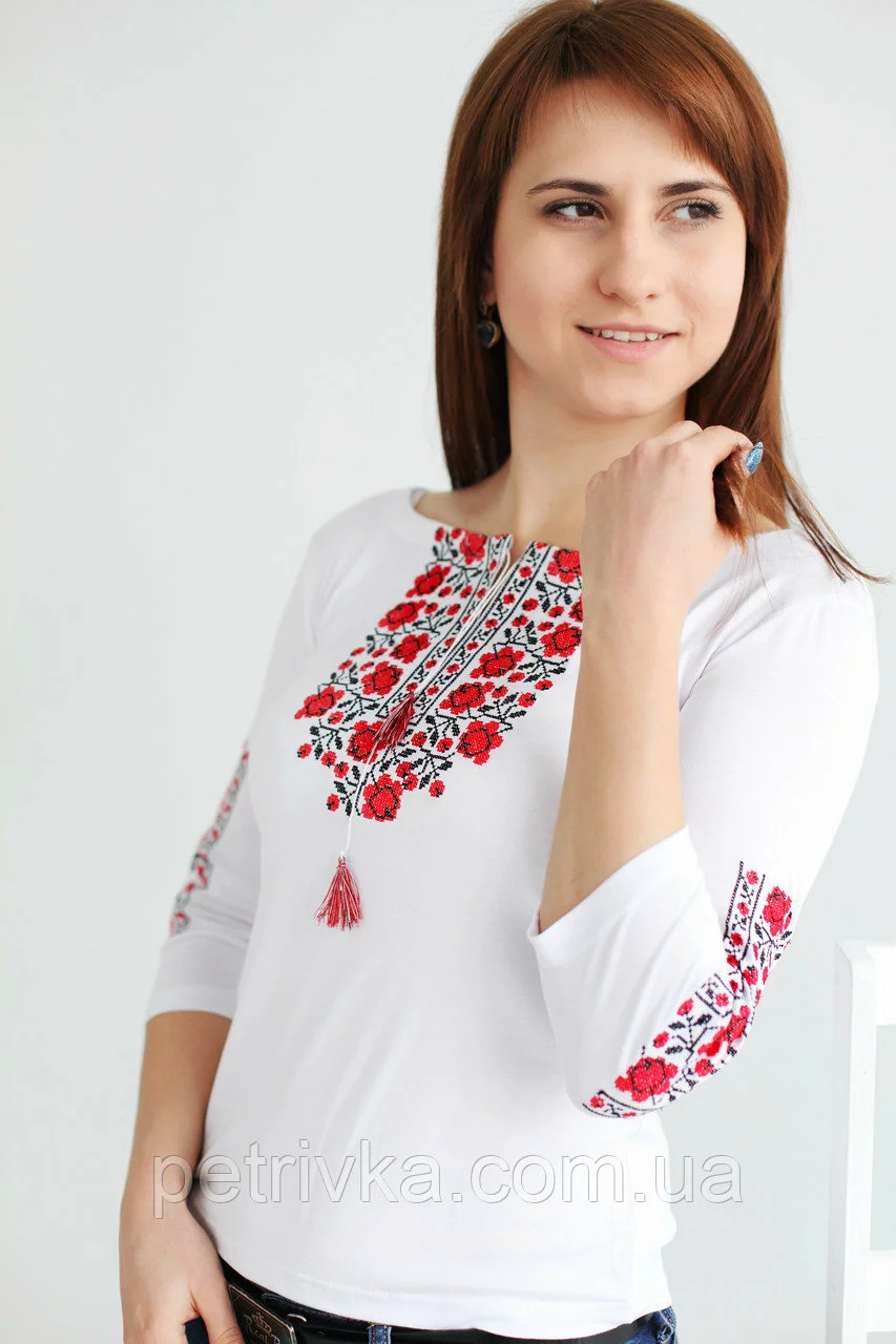 Молодіжна вишита жіноча футболка з вишитими 3/4 рукавамиС-3
