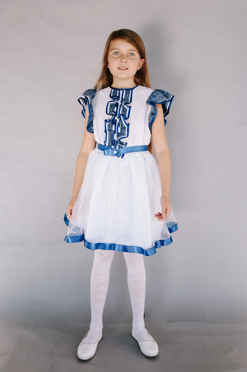 Дитяча вишита сукня яскраво-синього кольору з