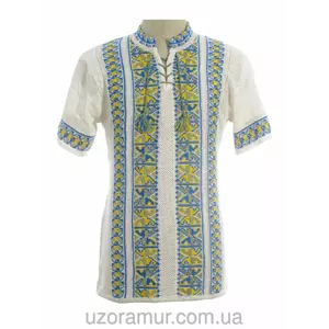 Вишиванка чоловіча на літо з жовто-блакитним візерунком
