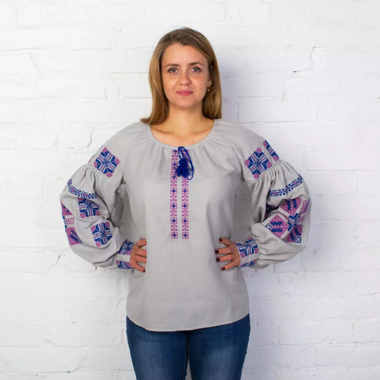 Жіноча стильна вишиванка виконана яскравими нитками, які