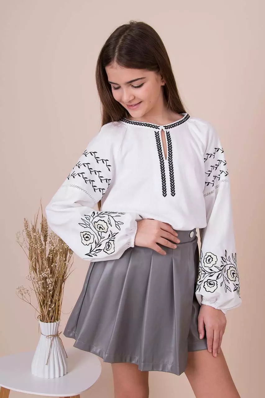 Вишиванка ВИШИВКА чорна по-білому дів. білий льон 5461-01 MEVIS