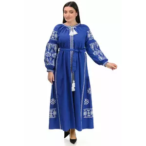 Сукня-вишиванка вільного фасону, має об'ємні рукави, а також поясок для підкреслення талії.