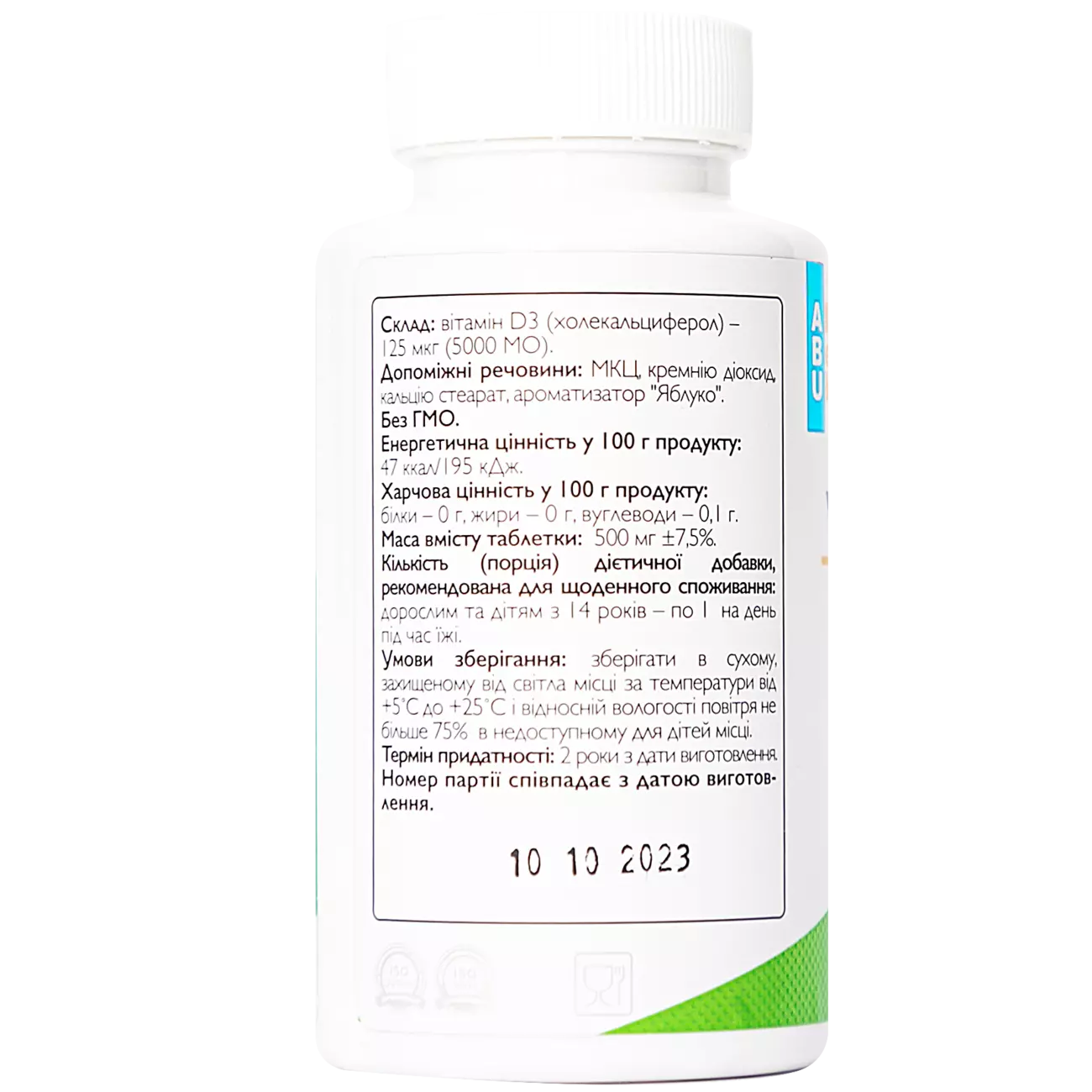 Вітамін D3 (холекальциферол) – 125 мкг (5000