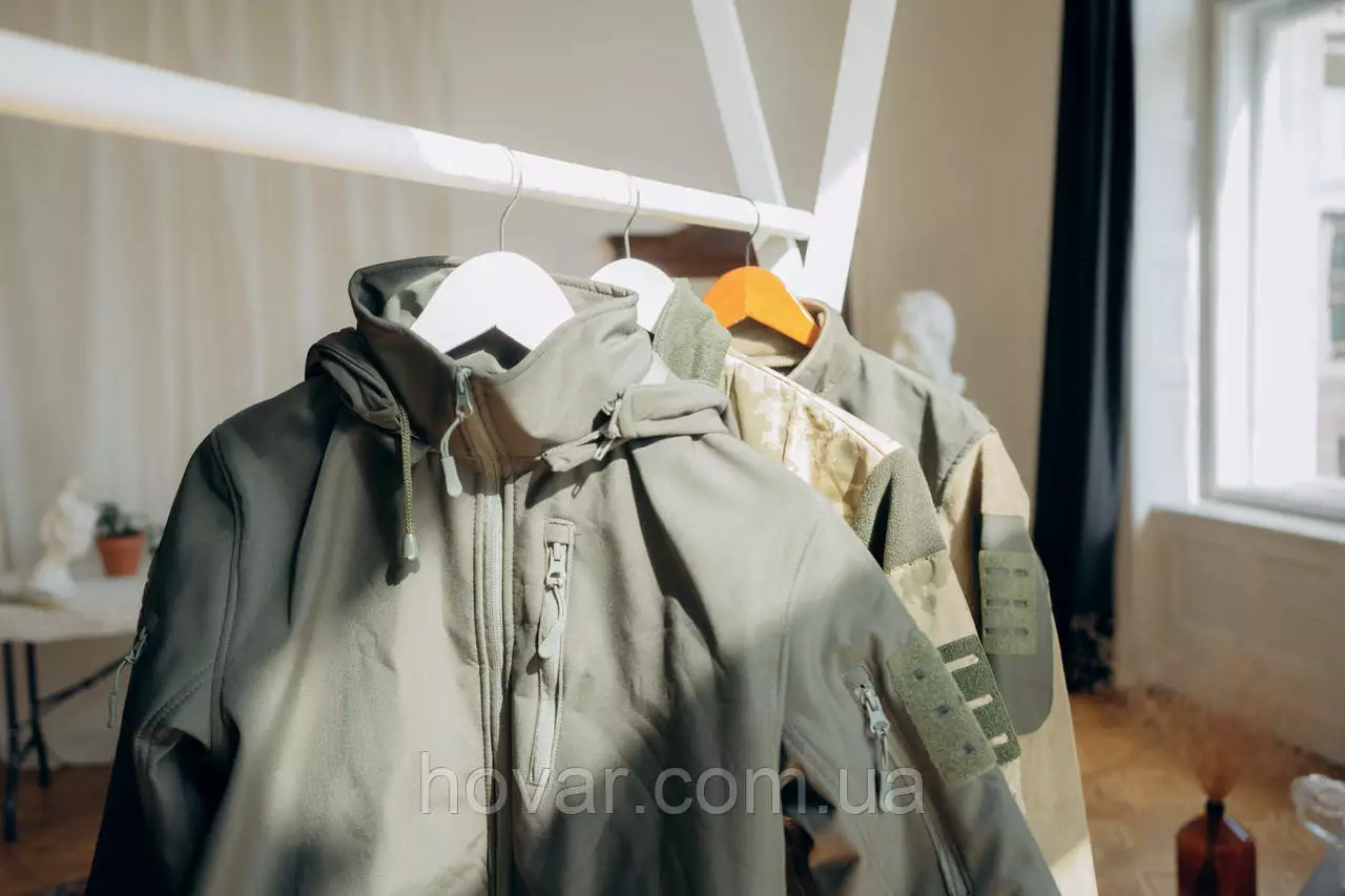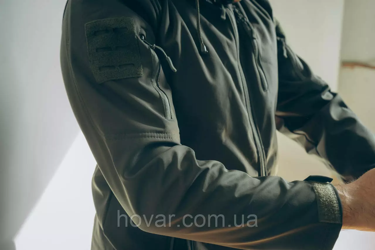 Військова куртка виготовлена із міцної водостійкої тканини SoftShell. Забезпечує хорошу терморегуляцію та захист від вітру та холоду за допомогою флісової підкладки.